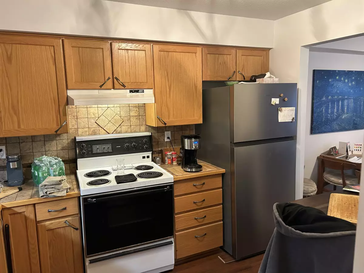 Welcome to Rosewood Estates--known for its spacious condos and well-run strata with guest-suite to host your visitors. This one bedroom condo features an oak kitchen, dedicated laundry room, and balcony with a lovely Japanese maple tree offering color and privacy. The large living area has a natural gas fireplace for cozy winter evenings. Enter your primary bedroom and be surprised by the size, including double walk in closet and ensuite. Plus, the main bath has a 4 pieces. You'll appreciate that this building has a recently replaced roof and boiler, a healthy contingency fund, and hot water and heat included in your strata fee. Come enjoy peace and quiet at Rosewood Gardens and be within walking distance of the hospital, shopping, leisure center, The Coliseum, and public transit.