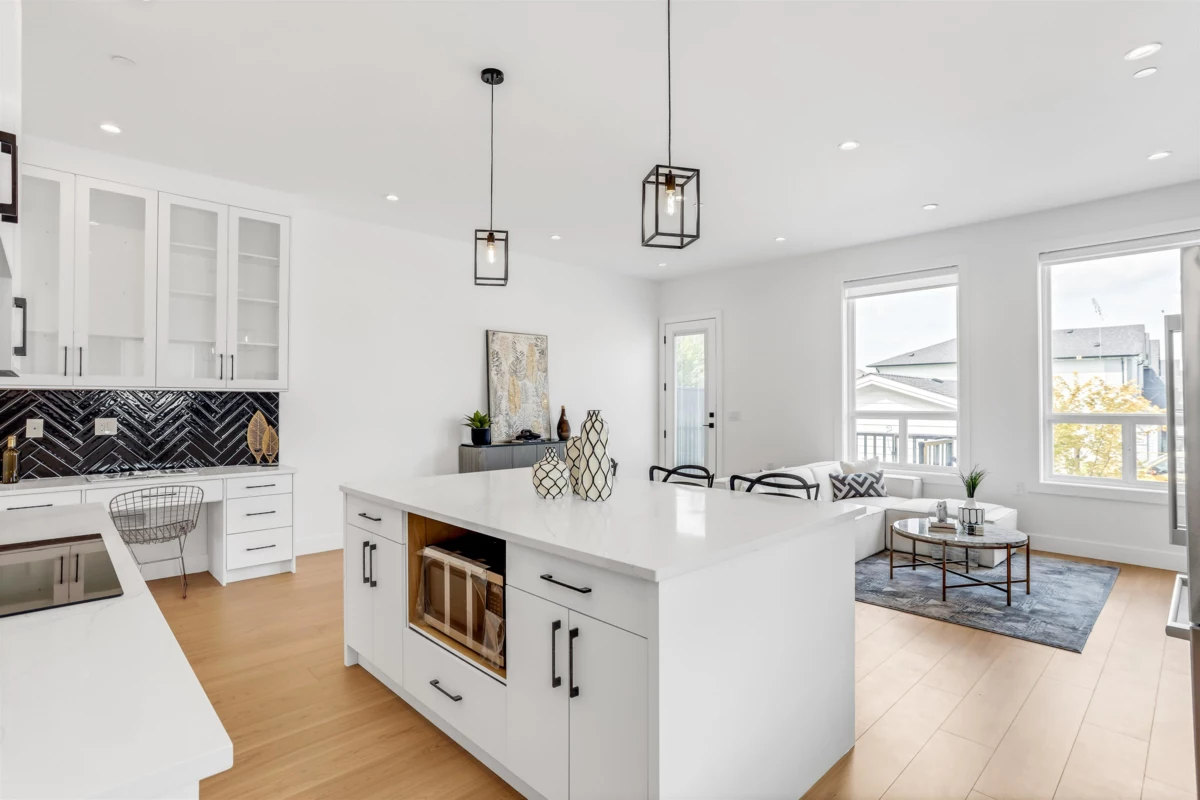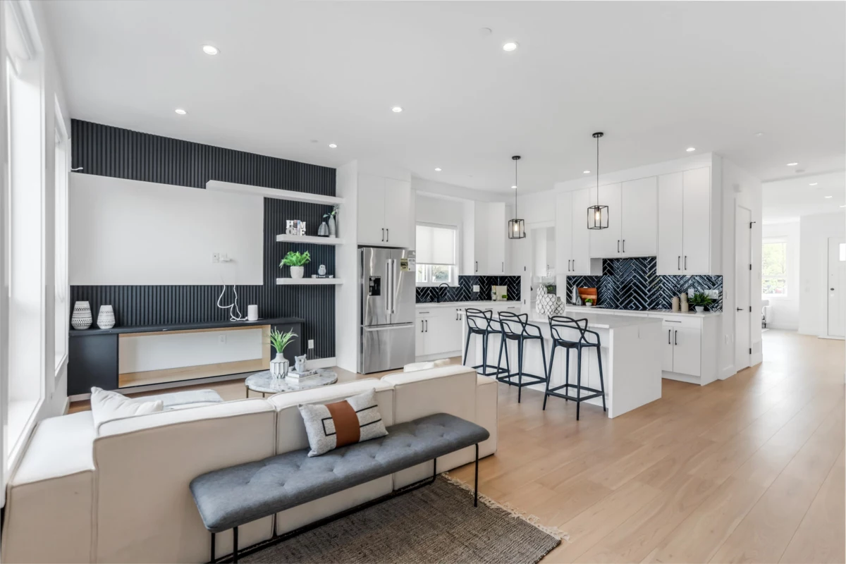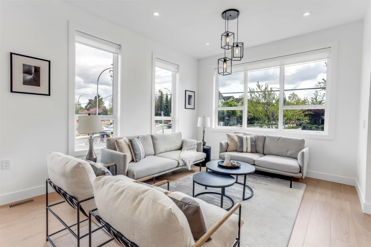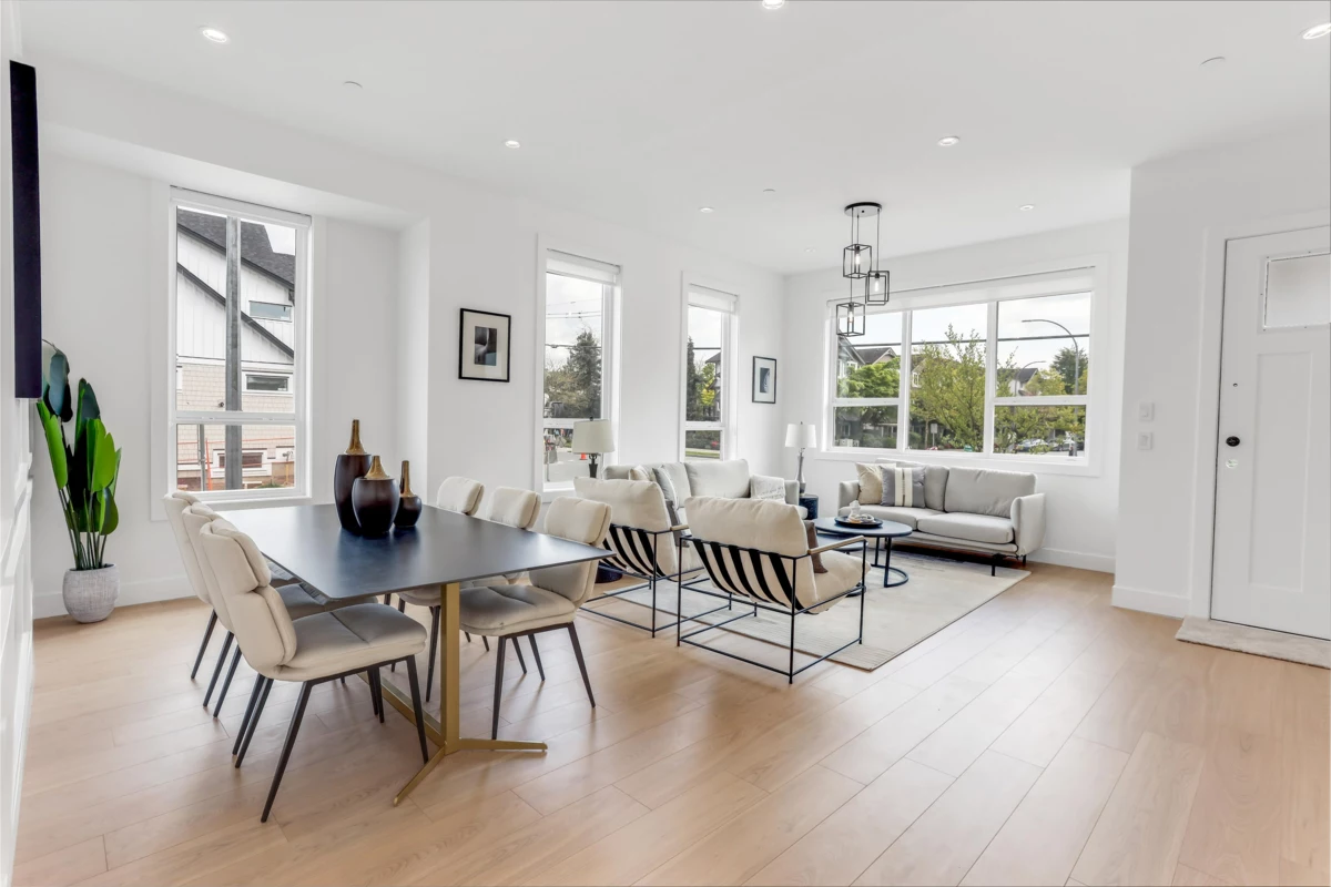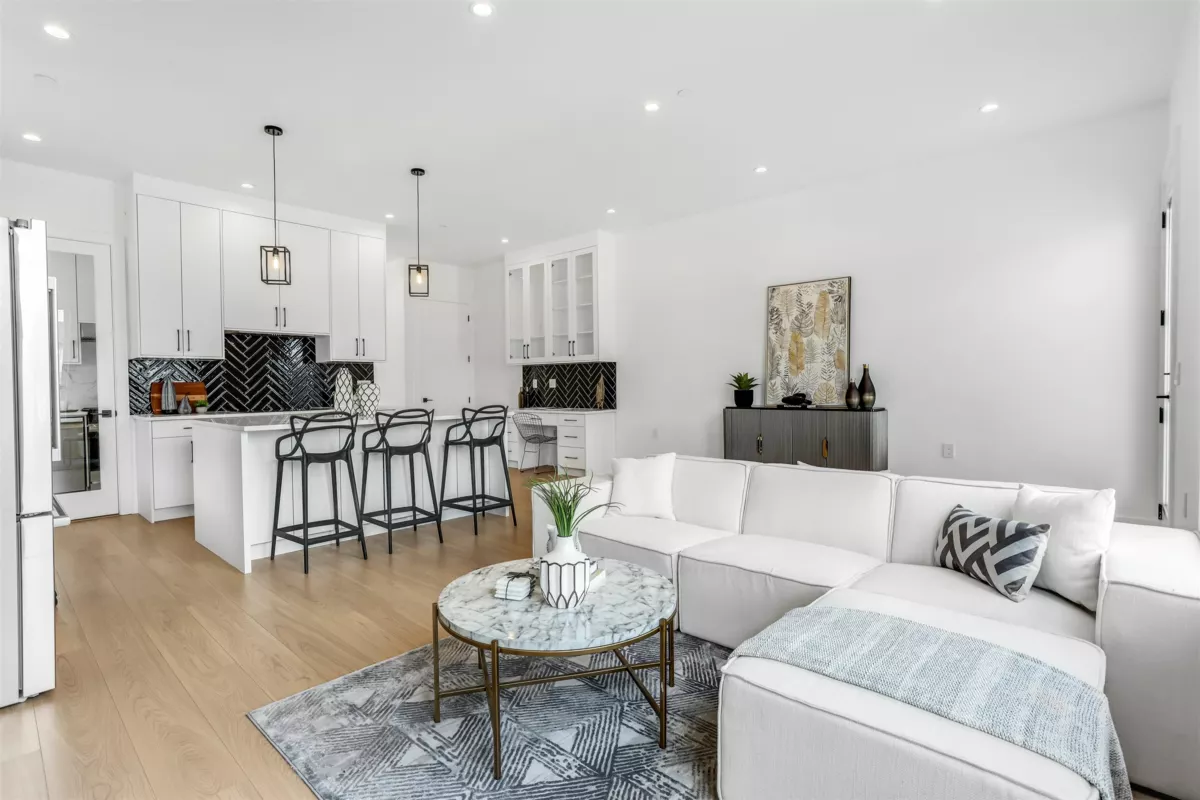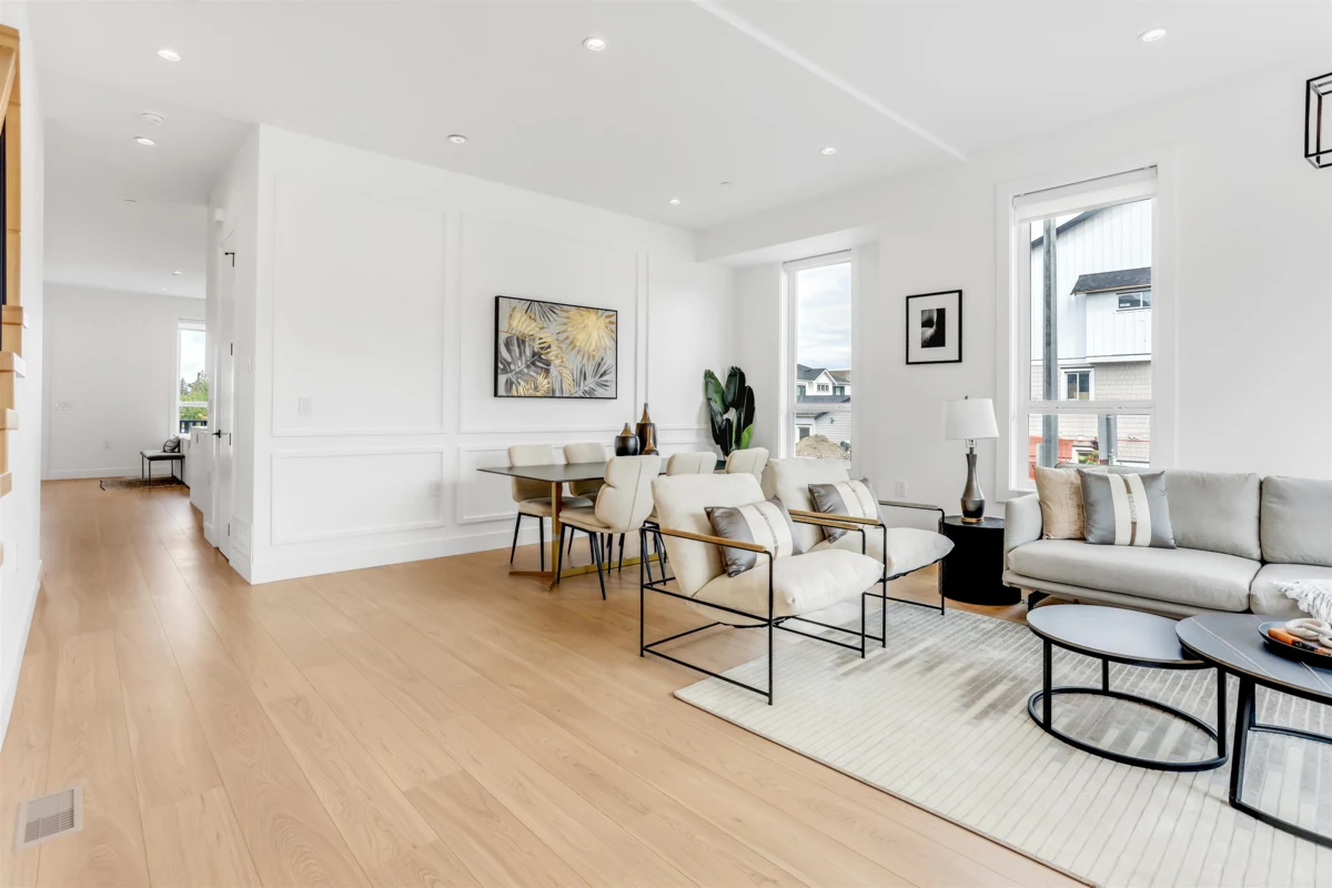 Step into luxury with this stunning, brand-new three-storey corner unit row home--designed for modern living and unbeatable convenience. The main floor showcases a bright, open-concept layout featuring a spacious living room, elegant dining area, cozy family room, gourmet main kitchen, and a bonus spice kitchen--perfect for entertaining or family meals. Upstairs, enjoy a private master retreat complete with an ensuite, plus three generously sized bedrooms and a full bathroom. The fully finished basement offers a large rec room with a full bath, plus a separate entrance to two bedrooms, a living room, and an additional bathroom. Best of all, there are NO strata fees! Located just minutes from schools, shopping centres, and quick access to Highway 1, this is the perfect place to call home.