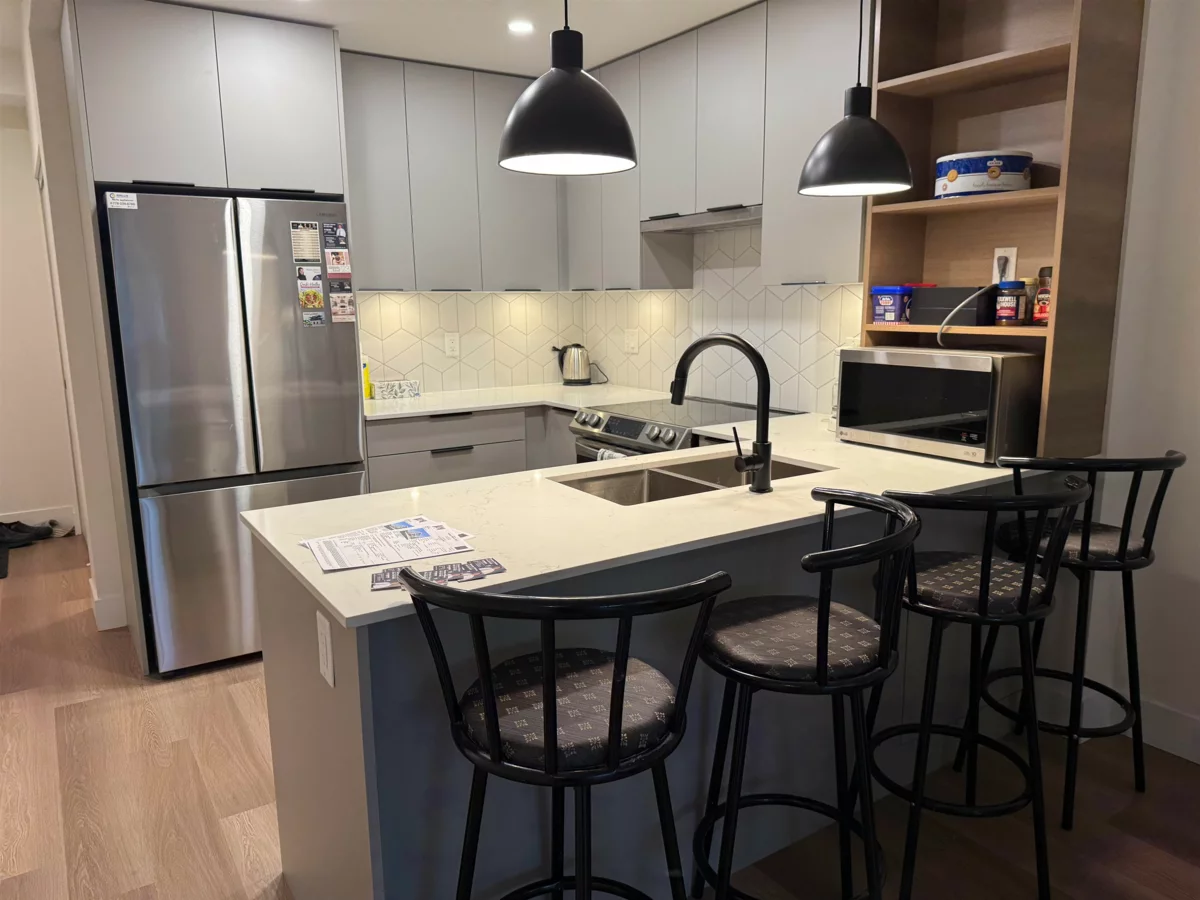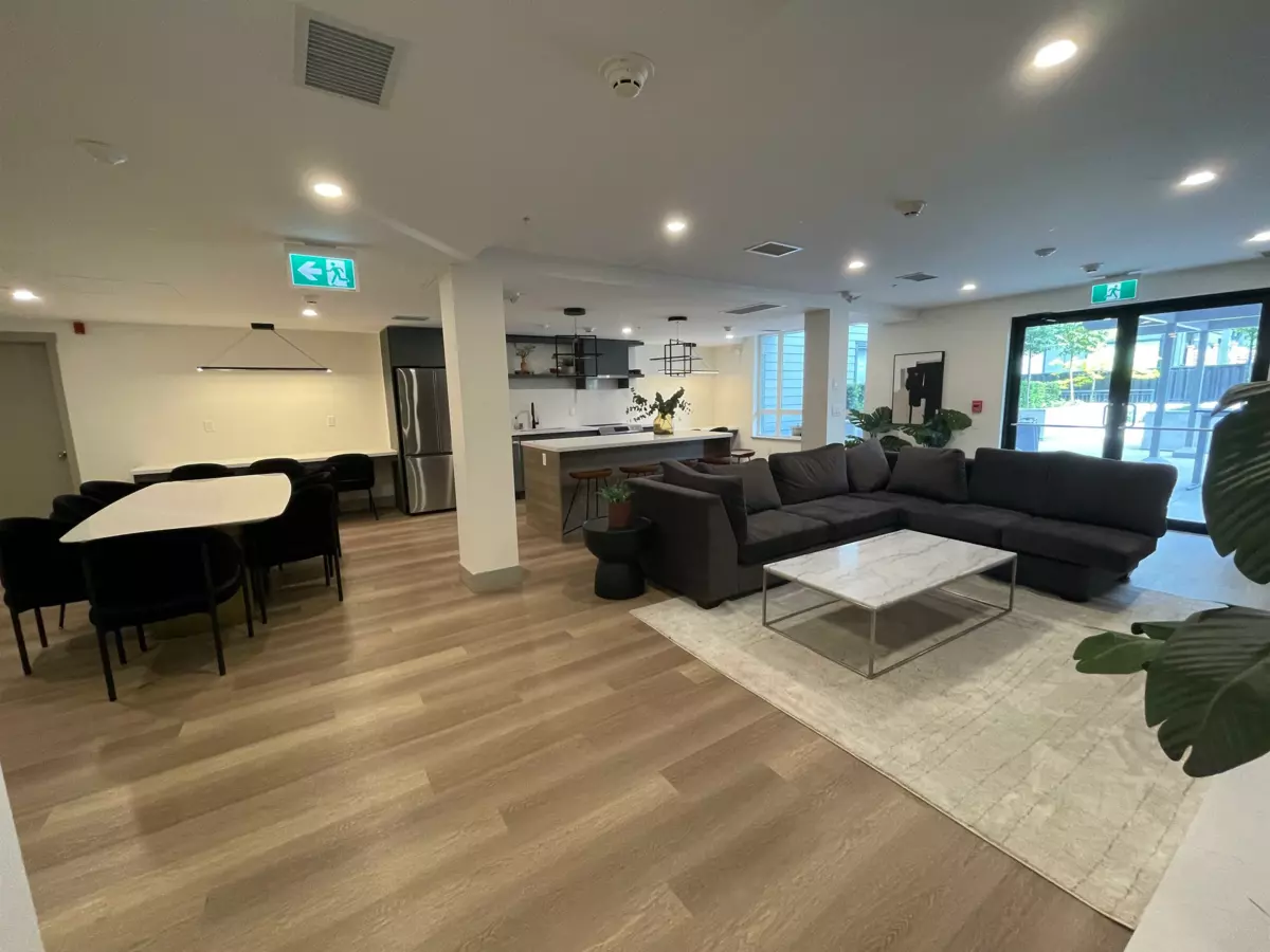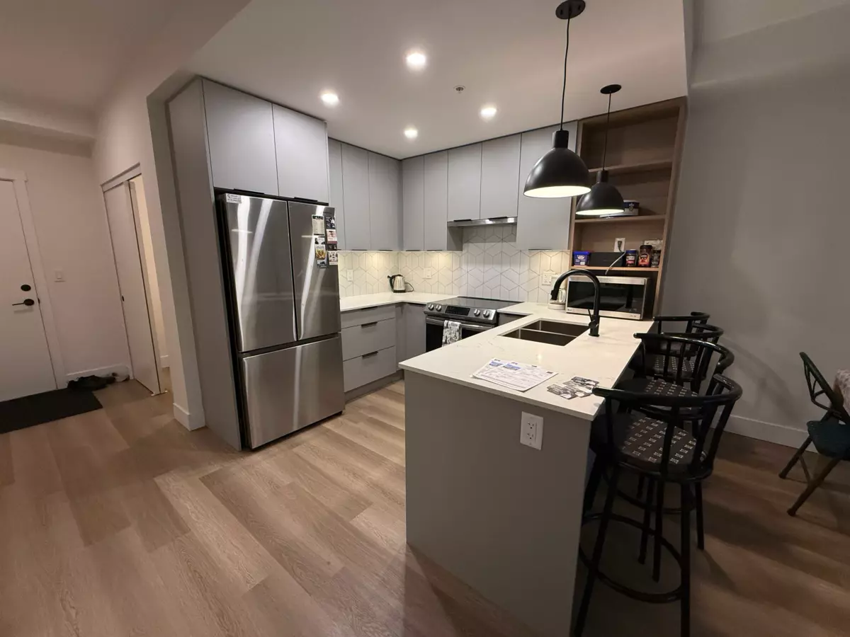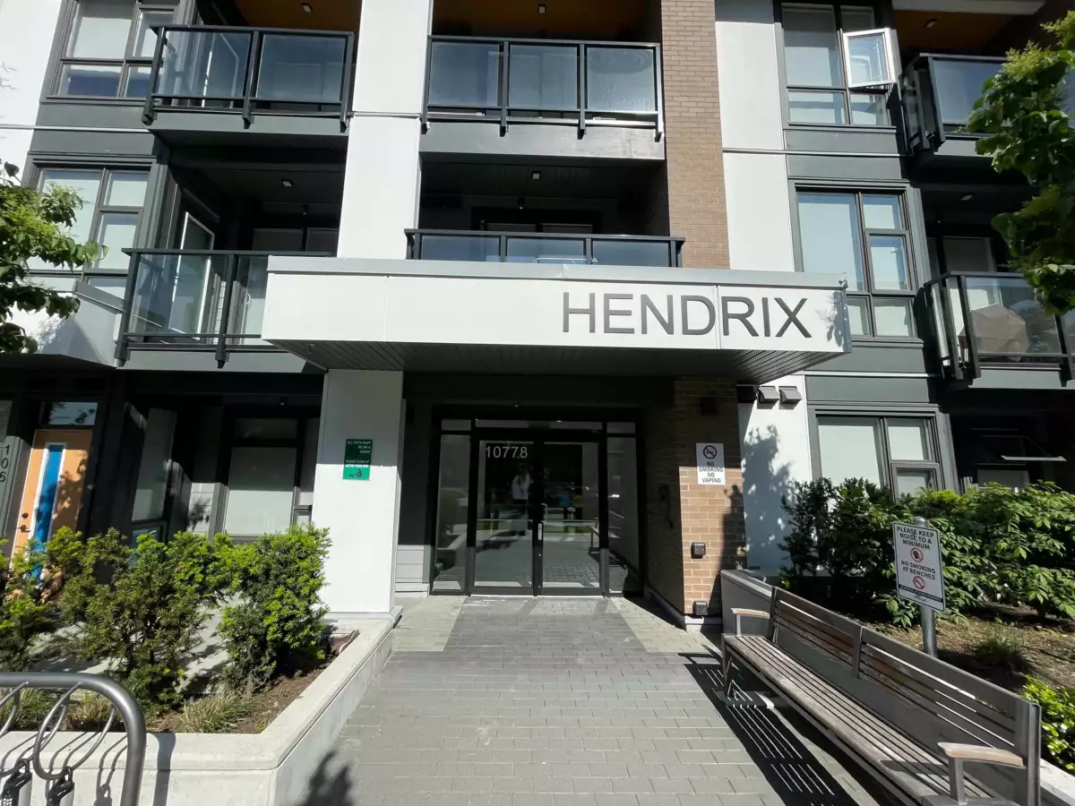 Buy this almost brand new 1 BR + Den unit in a 2-year-old Hendrix condo building, located just a few minutes' walk to the Gateway Skytrain station and just a few minutes by transit to great shopping, restaurants, library, recreational facilities, medical offices, and various services. This urban modern home boasts a gorgeous kitchen with polished quartz countertops accented with porcelain backsplash, soft-closing cabinets and drawers, a stainless steel undermount sink, and stainless steel-faced appliances. HENDRIX also showcases a fireside lounge, fabulous party room with a kitchen & dining area extending outside the courtyard. Enjoy the fully equipped gym and yoga studio with a courtyard view. The parking has been roughed in for electric vehicle charging. Great home and great investment!