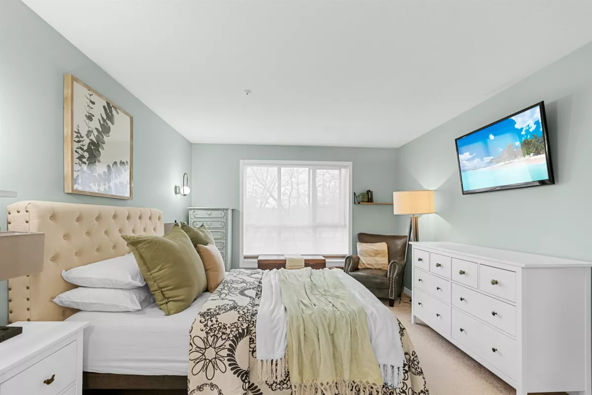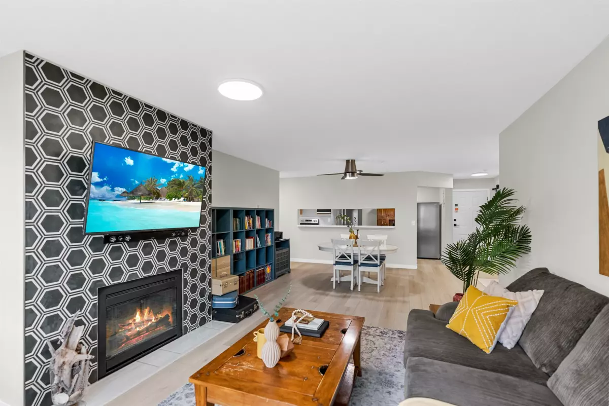 Welcome to Resort-Style Living at Chelsea Gardens! This beautifully updated 2 bed, 2 bath home features new SPC flooring throughout (except cozy carpeted bedrooms), custom fireplace wall tile, new baseboards, trim, and fresh paint. Enjoy new up/down blinds in the living room & master, new LED lighting, all-new door handles & locks, and a stylish barn-style entry closet door. The kitchen boasts newer S/S appliances, including a brand-new hood fan. Both bathrooms have been completely redone, with the master retaining its pristine tub & tile. This gated complex offers an outdoor pool, hot tub, pub, full workshop, RV parking and a very active social committee. One occupant must be 55 years or older. and even more for you to discover.