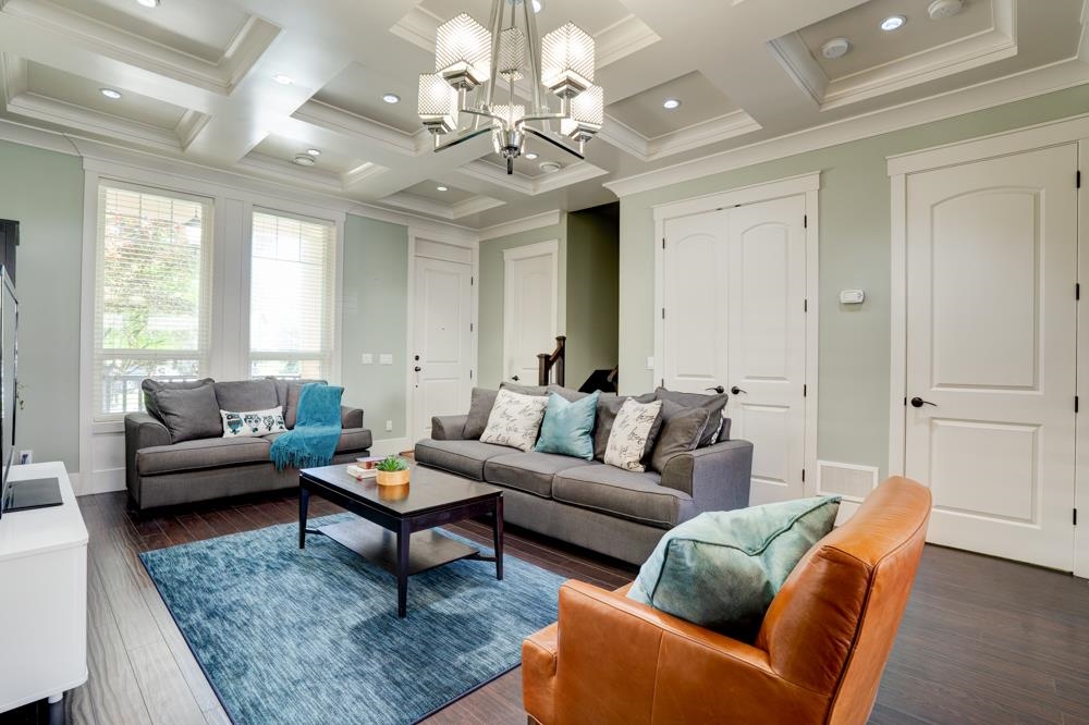 Luxury and comfort meet in this stunning 5 bed, 5 bath Yorkson home. Quality craftsmanship shines with 10’ ceilings, coffered details, rich millwork, and a bright open layout. The chef’s kitchen features white shaker cabinetry, a massive quartz island, and seamless flow into a spacious living room—perfect for entertaining. Upstairs offers 3 bedrooms, each with a spa-like ensuite; the primary includes a 2-person jacuzzi tub. Bonus: 2 laundry areas and a 2-bed legal suite with a great tenant. Enjoy A/C, pro landscaping, mature trees for privacy, and a two car garage plus 2 extra parking spots. Ideally located in a quiet cul-de-sac in prime Willoughby—close to top schools, parks, shops, dining, Hwy 1, and the upcoming Smith Athletic Park just a block away. Open House - Sun Nov 30th 1-3pm