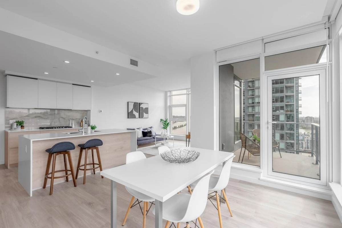 Welcome to luxury living at Pier West, New Westminster’s premier waterfront development! This brand new 2-bdrm, 2-bath home spans 1,025 sqft of thoughtfully designed space, perched on the 21st floor with unobstructed water views from every principal room.Boasting two private balconies, this home offers seamless indoor-outdoor living and front-row seats to breathtaking sunsets and city lights!The open-concept layout features floor-to-ceiling windows, high-end finishes, and a modern kitchen equipped with premium appliances and sleek cabinetry.Enjoy spa-inspired bathrooms, generous closet space, in-suite laundry, and A/C for year-round comfort. Residents also benefit from exclusive access to luxury amenities, concierge, fitness centre, steps to the River Market, SkyTrain and scenic boardwalk!