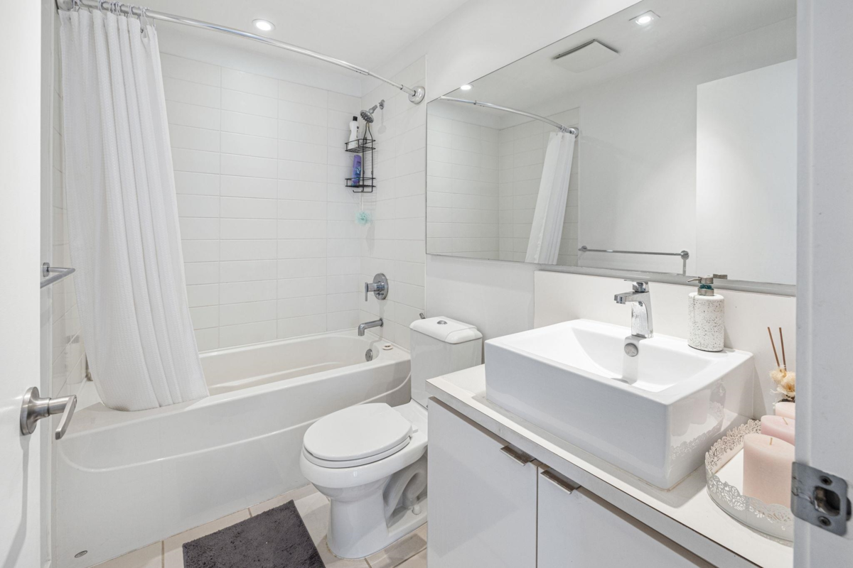 Discover this rarely available South East facing Corner suite in Centerpoint offering 2 bedrooms & 2 full bathrooms. This 880 sq. ft. unit boasts breathtaking views of the Mountains, Deer Lake & the city which are accessible from its spacious balcony & primary bedroom. This functional layout features an open kitchen with granite countertops, floor to ceiling windows, an excellent separation between the two bedrooms, a distinct dining & living room area perfect for entertaining & convenient in-suite laundry. Centerpoint offers exceptional amenities, including a gym, rooftop garden & recreation room. 1 parking & 1 storage. Call today for private viewing!