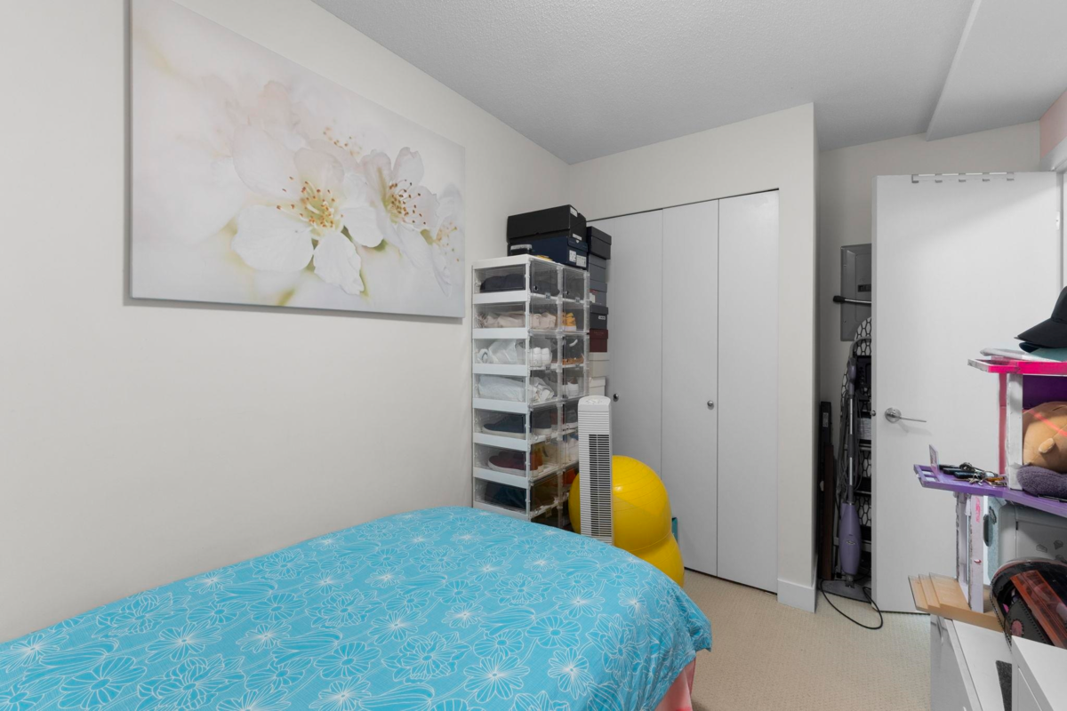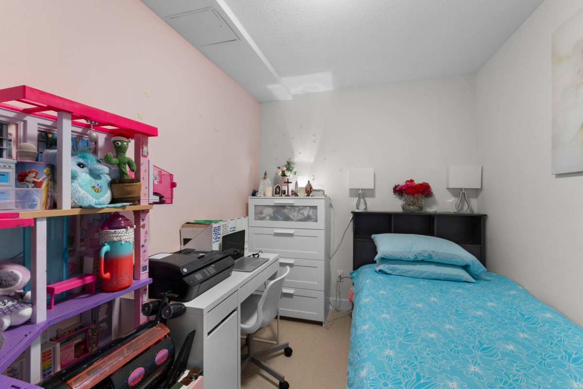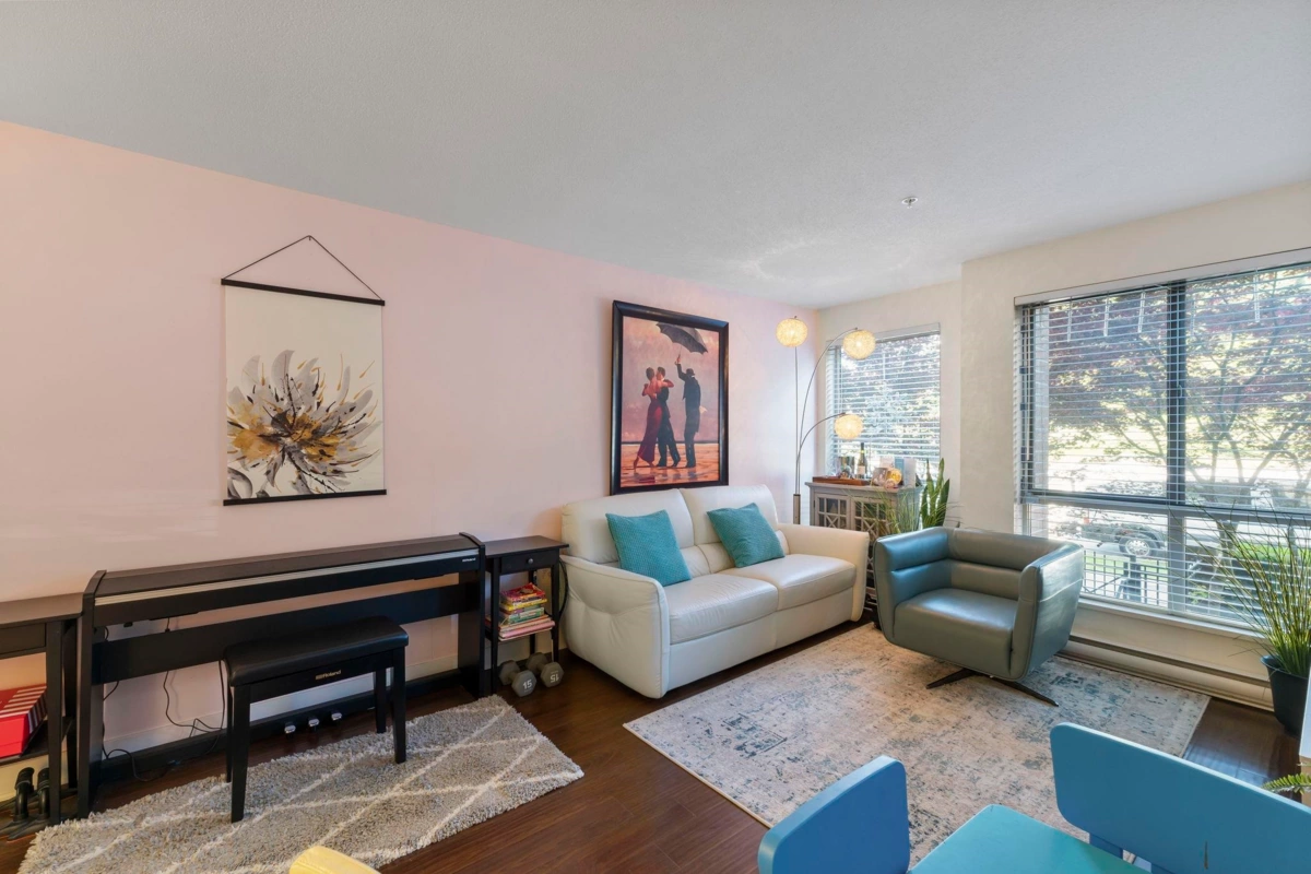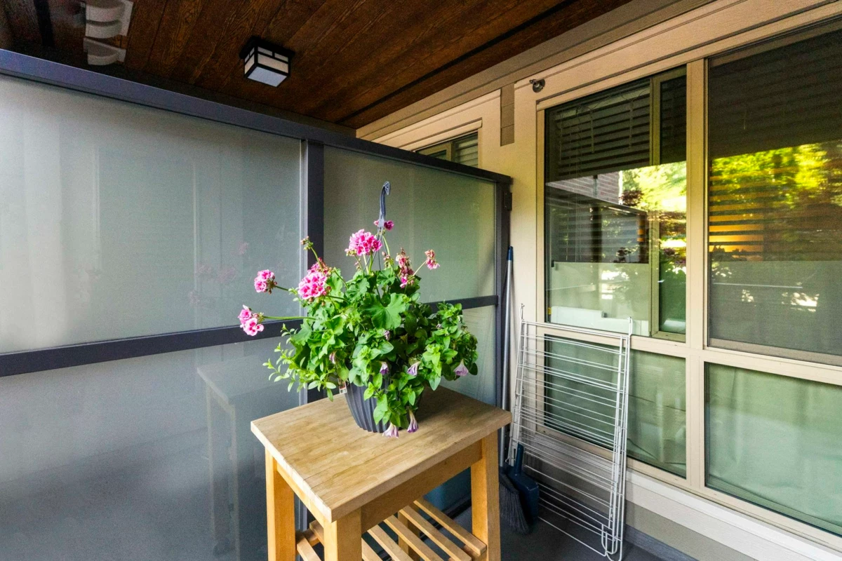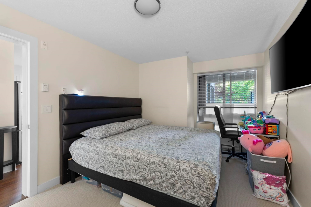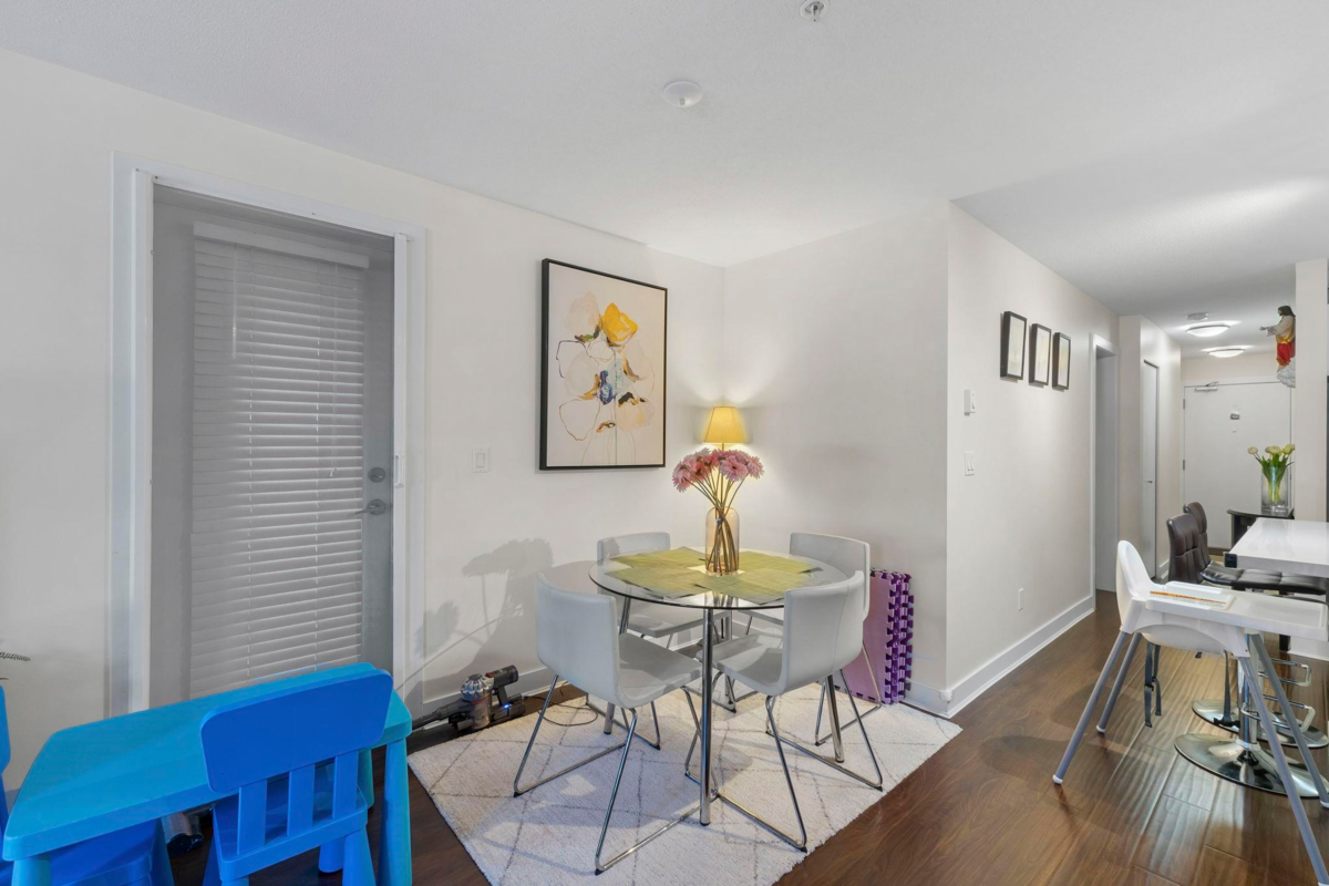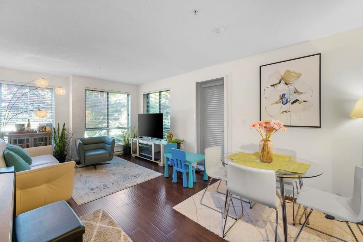 Welcome to Dominion by Ledingham McAllister in the heart of New Westminster. This bright and spacious 1 bed plus large den home offers flexible living, with a den big enough for a second bedroom or office. Enjoy a modern kitchen with quartz counters, stainless steel appliances, soft-close cabinetry, and a floating breakfast bar. The open layout flows to a covered patio perfect for relaxing. The primary bedroom features a walk-in closet, cheater ensuite, and views of the Royal Gardens. Includes parking, storage, and access to a secure bike room. Steps to SkyTrain, Douglas College, shops, and cafes. A beautiful home in an unbeatable location!