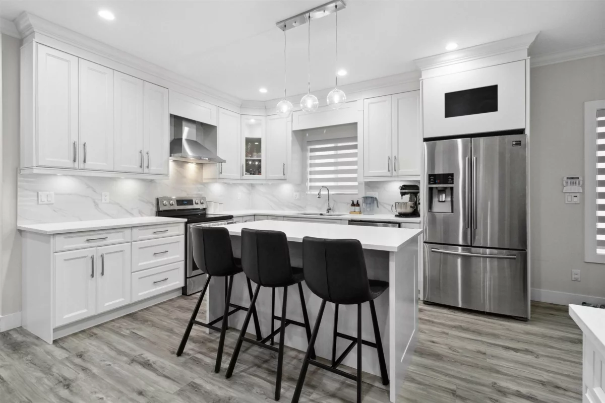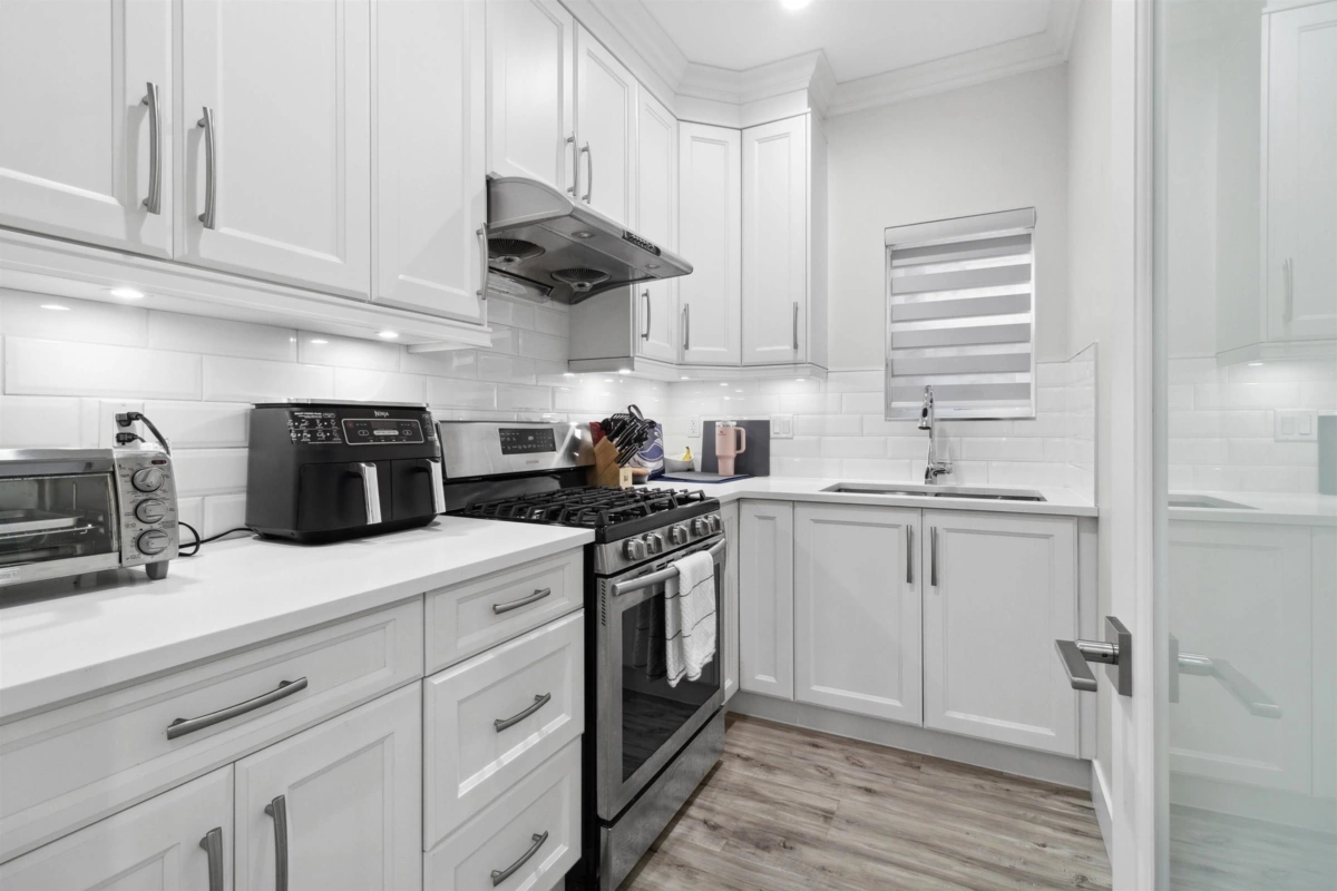 Welcome to your dream home! This stunning 4 bedroom and 4 full bathroom residence offers an ideal blend of luxury and functionality. The primary suite boasts a private balcony for serene mornings, while an additional office on the main floor enhances your work-from-home experience. Entertain effortlessly with a gourmet kitchen, complete with a spice kitchen, and enjoy year-round comfort with radiant in-floor heating and air conditioning. A 2-story rental suite with 2 beds, 2 baths, and in suite laundry provides additional income. Outside, find ample parking and a detached double garage with convenient back lane access. Located on a quiet, family-friendly street, this home is centrally located near all major routes, shopping, schools, and recreation. Don't miss this exceptional opportunity!