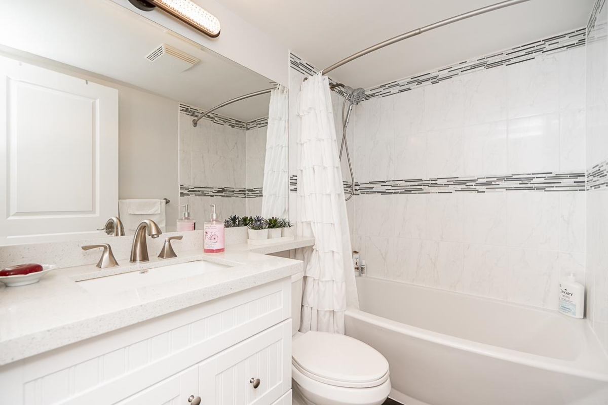 Renovated 2 bed unit in the coveted ARCADIAN! (PET FRIENDLY! 2 cats or dogs, no size limit!) Enjoy open-concept living with a modern vibe, fresh paint, new window screens and Hunter Douglas blinds. The kitchen boasts a sleek new island and stainless steel appliances. A redesigned laundry area offers custom storage and a handy hanging bar. Covered/Private Solarium. All lighting upgraded to energy-saving LED fixtures. This proactive strata includes a guest suite, library, workshop, and a renovated lounge/common room. One storage locker and one secure parking spot (extra parking for rent based on availability) plus lots of street parking. Prime location close to shopping, beach, hospital, transit and senior centre. Mobility benefit: walk to the unit with no need for stairs. Motivated seller