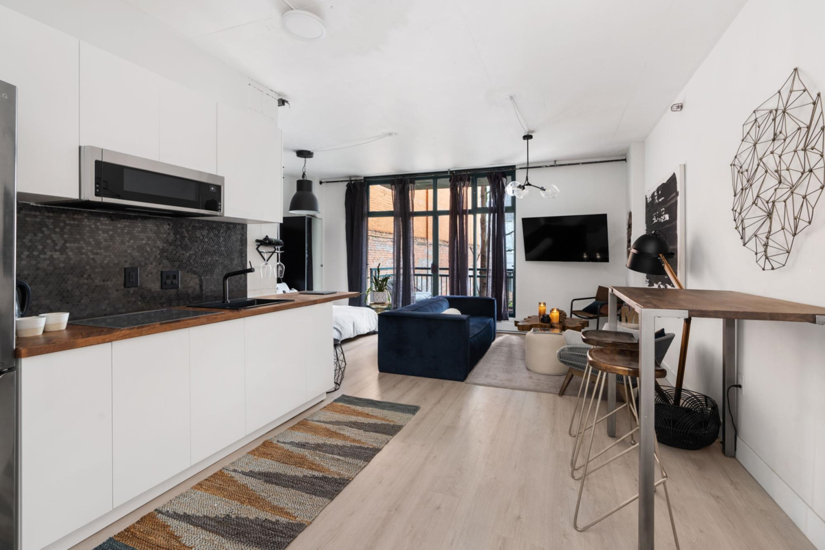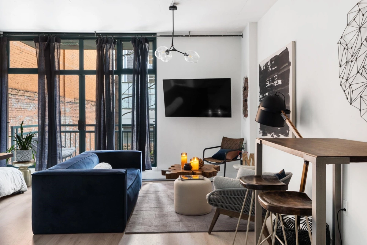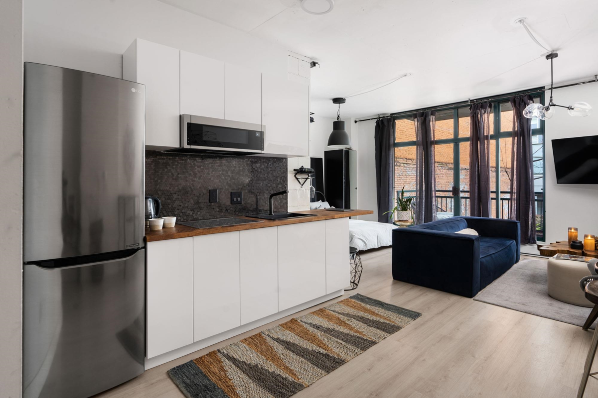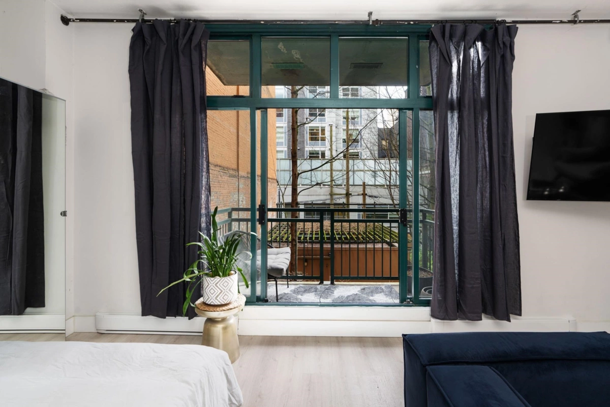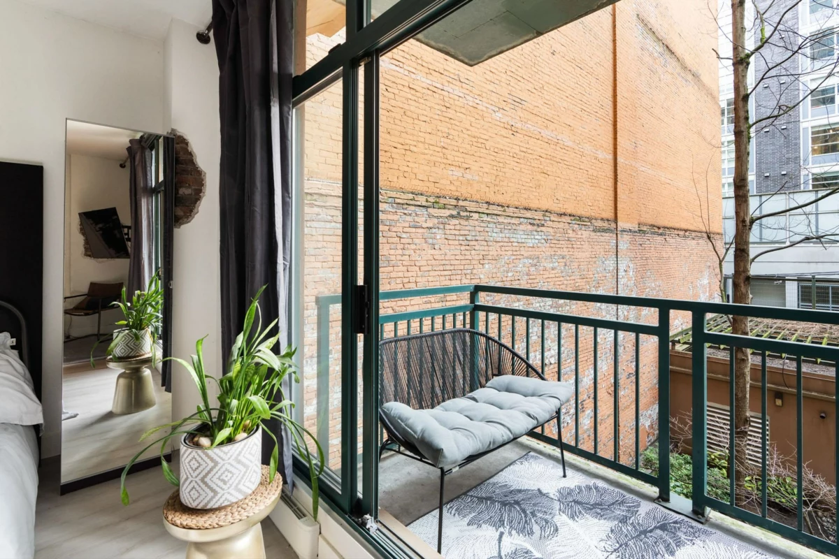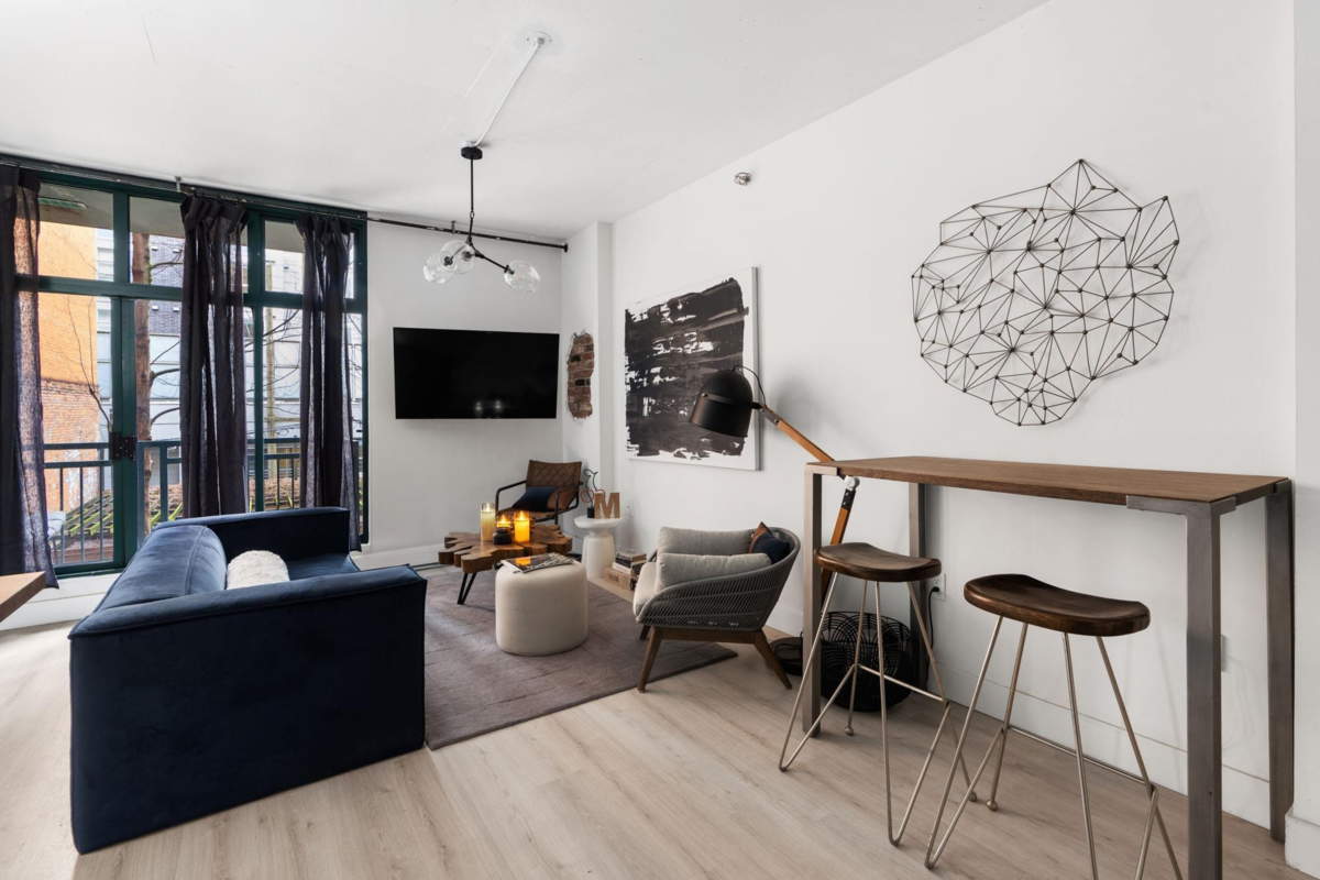 Looking for a cozy studio in the heart of Vancouver's downtown? The Van Horne is the perfect choice! This well-maintained concrete historic building is located steps from Gastown - renowned for its world class shopping, dining & entertainment. This particular studio suite, nestled on the peaceful side of the building, has been substantially renovated & offers a lovely view of the courtyard. Unique features of the home include porcelain honey comb tiles through-out, modern faucets & light fixtures & exposed brick that adds rustic charm & character to the space. The home boasts 10' ceilings, laminate floors, in-suite laundry & a balcony. This is an excellent opportunity for first-time homeowners or those looking for a solid investment. Furry friends & rentals are welcomed. 1 parking stall!