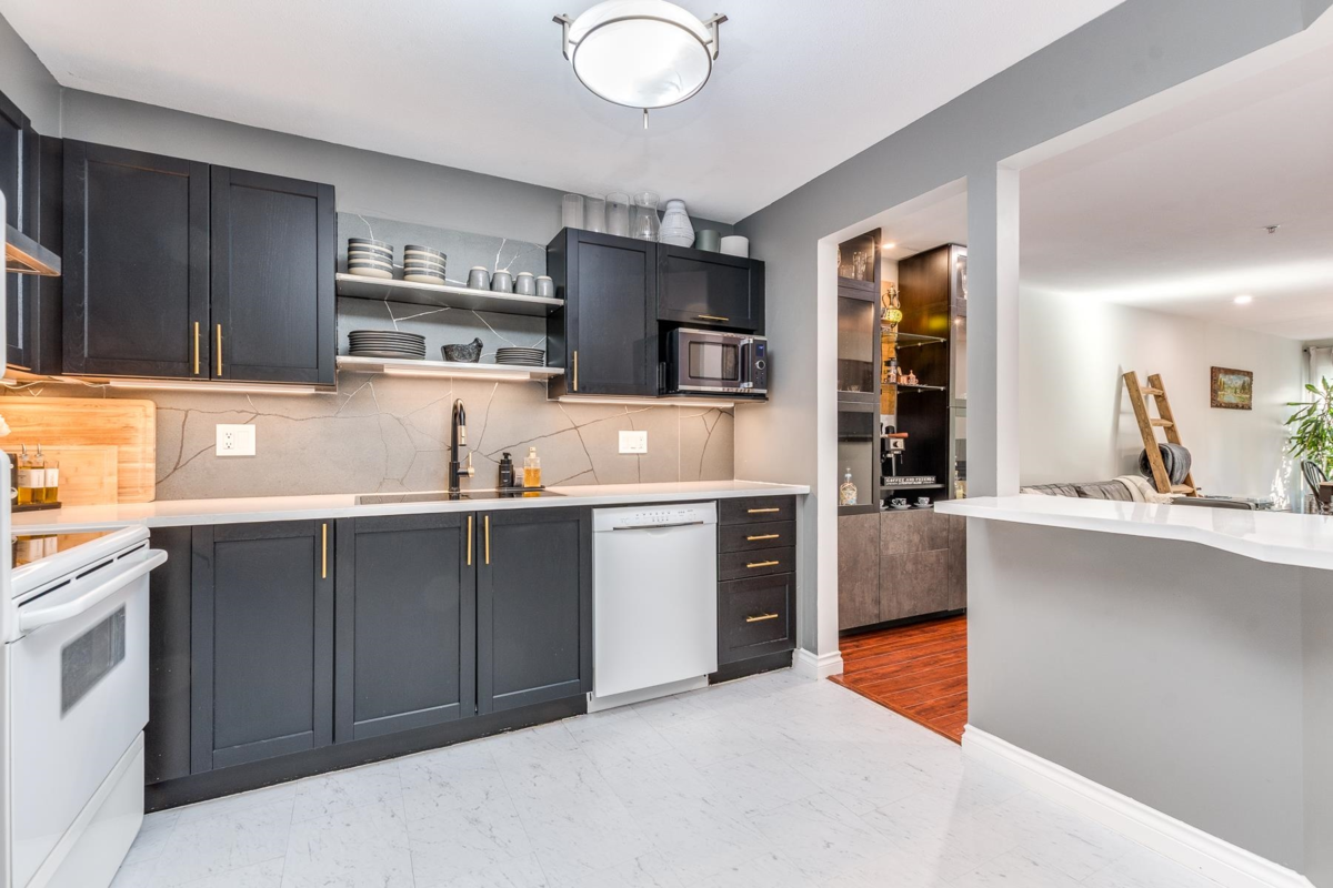 Units like this are a RARE find, over $30k in RENOVATIONS and a 250 sq.ft , COVERED patio! This 2 Bed, 2 bath in 'River Gardens" a quiet complex tucked away in Central Maple Ridge has been upgraded with modern luxuries like quartz countertops, brass hardware/fixtures, multi-purpose kitchen sink and unqiue feature walls. There are two sharply renovated bathrooms, custom built-ins , modern lighting choices throughout and ample space. Your patio has year round use with eastern exposure and privacy facing the GREENBELT. Located walking distance to the West Coast Express and with easy access to the Haney Bypass this is perfect for the commuter. A private little gem of a building, in a growing neighborhood this is one you'll want to check out!