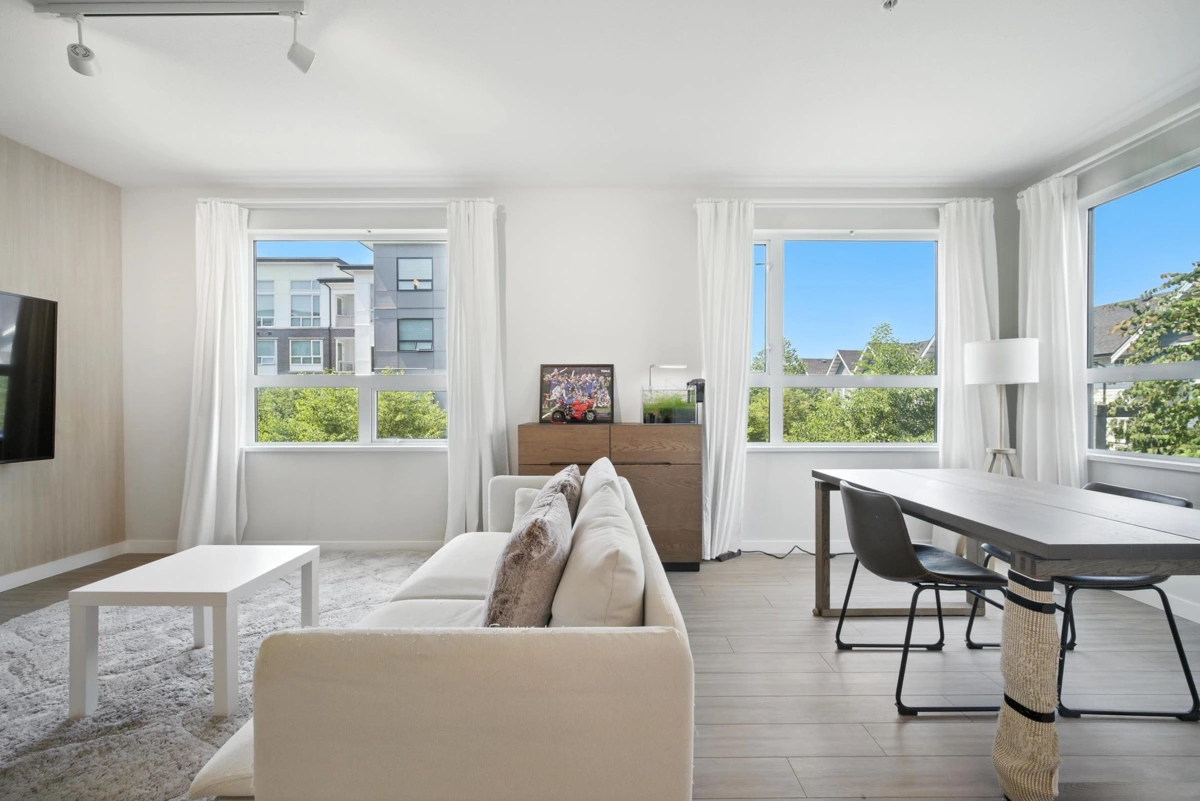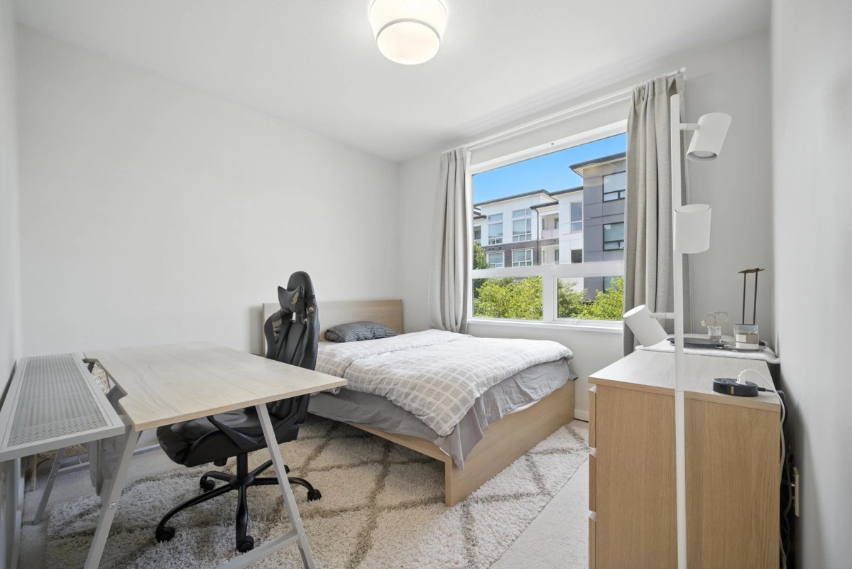 Modern 2-bedroom corner unit at Berkeley House in central Richmond. Bright and air-conditioned, with 9’ ceilings and a spacious layout. Gourmet kitchen with premium appliances, stone counters, and premium backsplash. Large primary suite with walk-in closet and double-sink ensuite. Enjoy over 5,000 sq.ft. of amenities including gym, lounge, and co-working space. Walking distance to Canada Line, Walmart, restaurants, plazas, Tomsett Elementary, and MacNeill Secondary. A perfect mix of comfort and convenience.