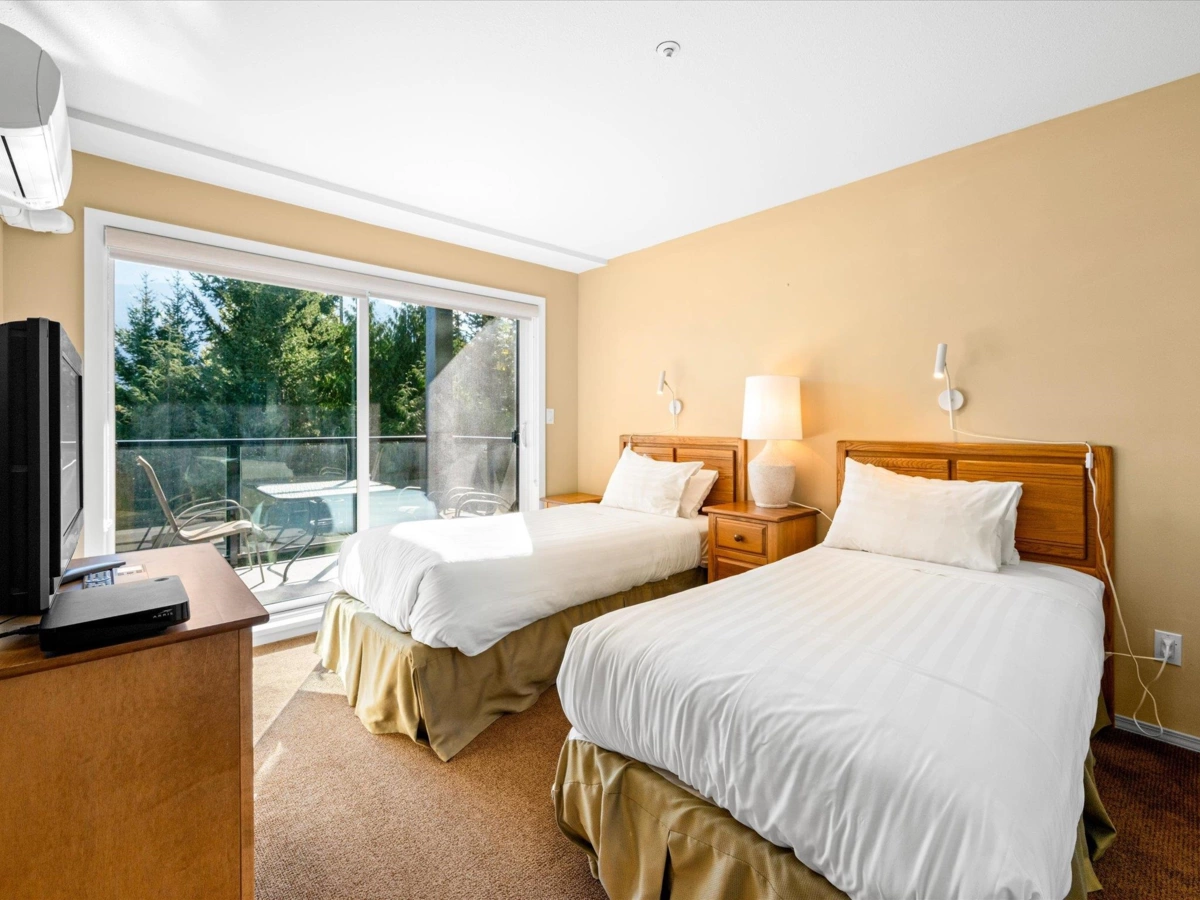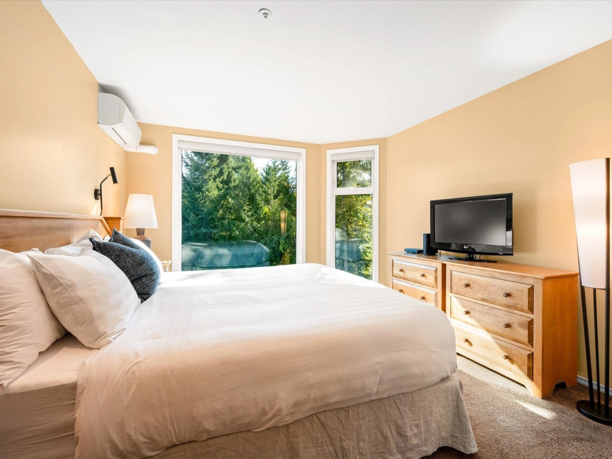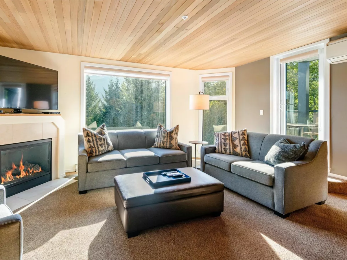 Blueberry Hill! Ironwood is a quiet building with special location overlooking the Whistler Golf Course and walking distance to Village restaurants & shops. The outdoor pool & hot tub area get plenty of sun and have panoramic views of both Whistler & Blackcomb! The building is just completing an exterior upgrade which includes new siding, new windows and doors, new balconies and decks, and other updates to modernize the development. #213 is one of the larger 2 bedroom condos available in Whistler. It has beautiful ski area views and features a full kitchen, in-suite laundry, a gas fireplace, and air-conditioning in the living area and both bedrooms. Phase 1 zoning allows unlimited owner use and the ability to rent short-term via Airbnb or a rental company of your choice. Come have a look!