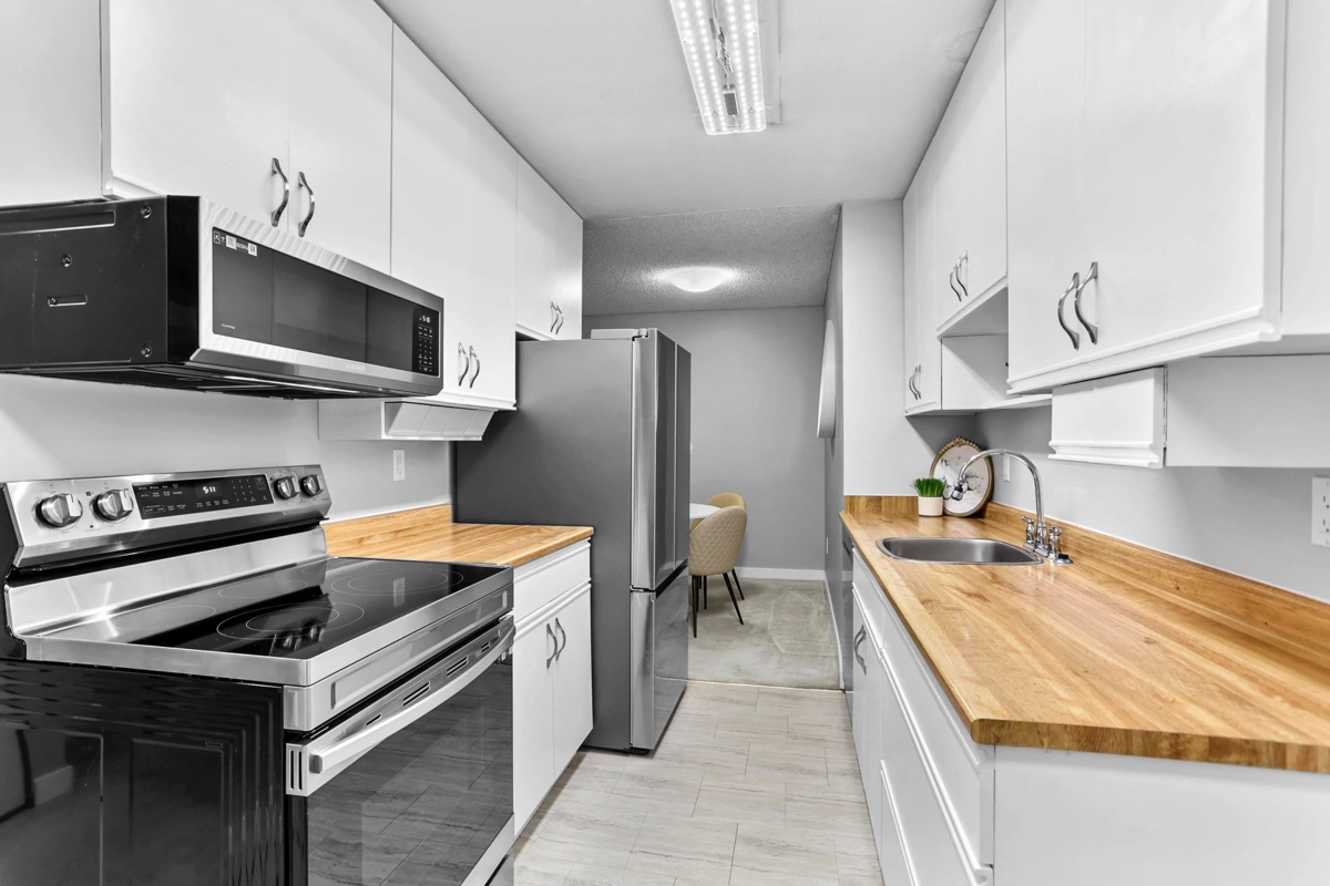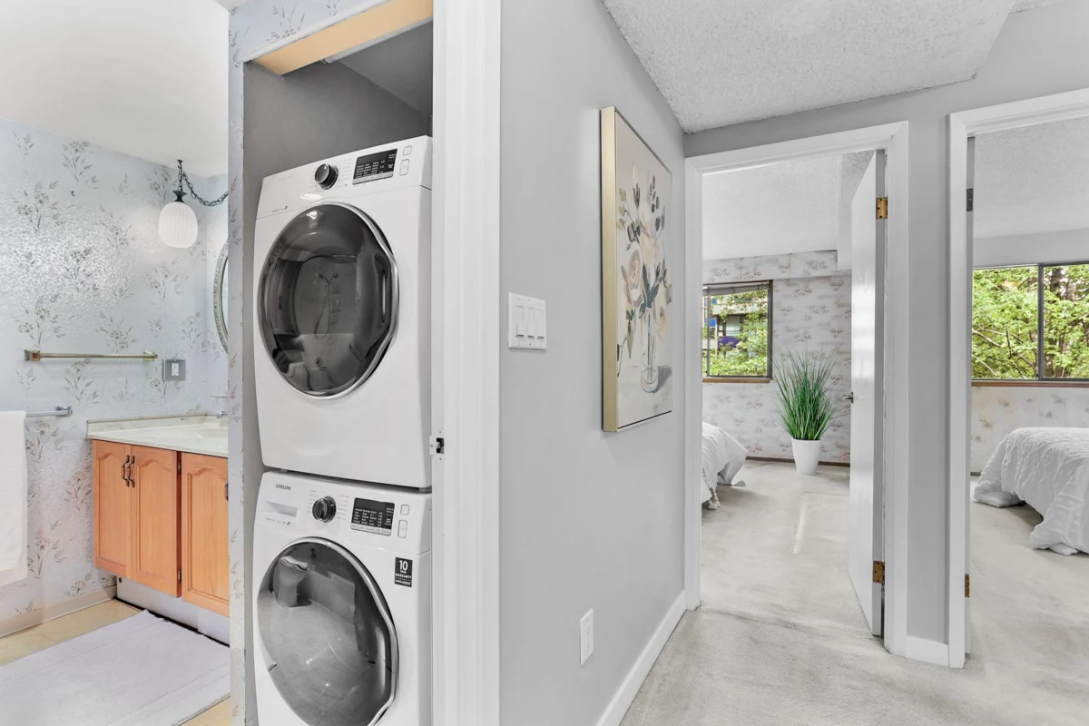Spacious 2 bed in the heart of Burnaby, tucked away on a quiet cul-de-sac within a 3.14-acre community. Move in ready with updates throughout - main area freshly painted and opens onto a covered deck, ideal for year-round enjoyment. Kitchen appliances 1year old, updated counters & painted cabinets. Bathroom was refitted a year ago, giving the home a fresh, modern feel. Building is well-maintained & amenity-rich, with an indoor pool, hot tub, & elevator access. Major updates, include re-piping, work to the roof, elevators, balconies, & windows. 1 stall & locker, with option to rent 2nd stall for $40/ month. Strong reserve fund- peace of mind, strata fees cover heat & hot water. Pet lovers -they allow dogs and cats. A rare blend of comfort, size, convenience & long term investment appeal.