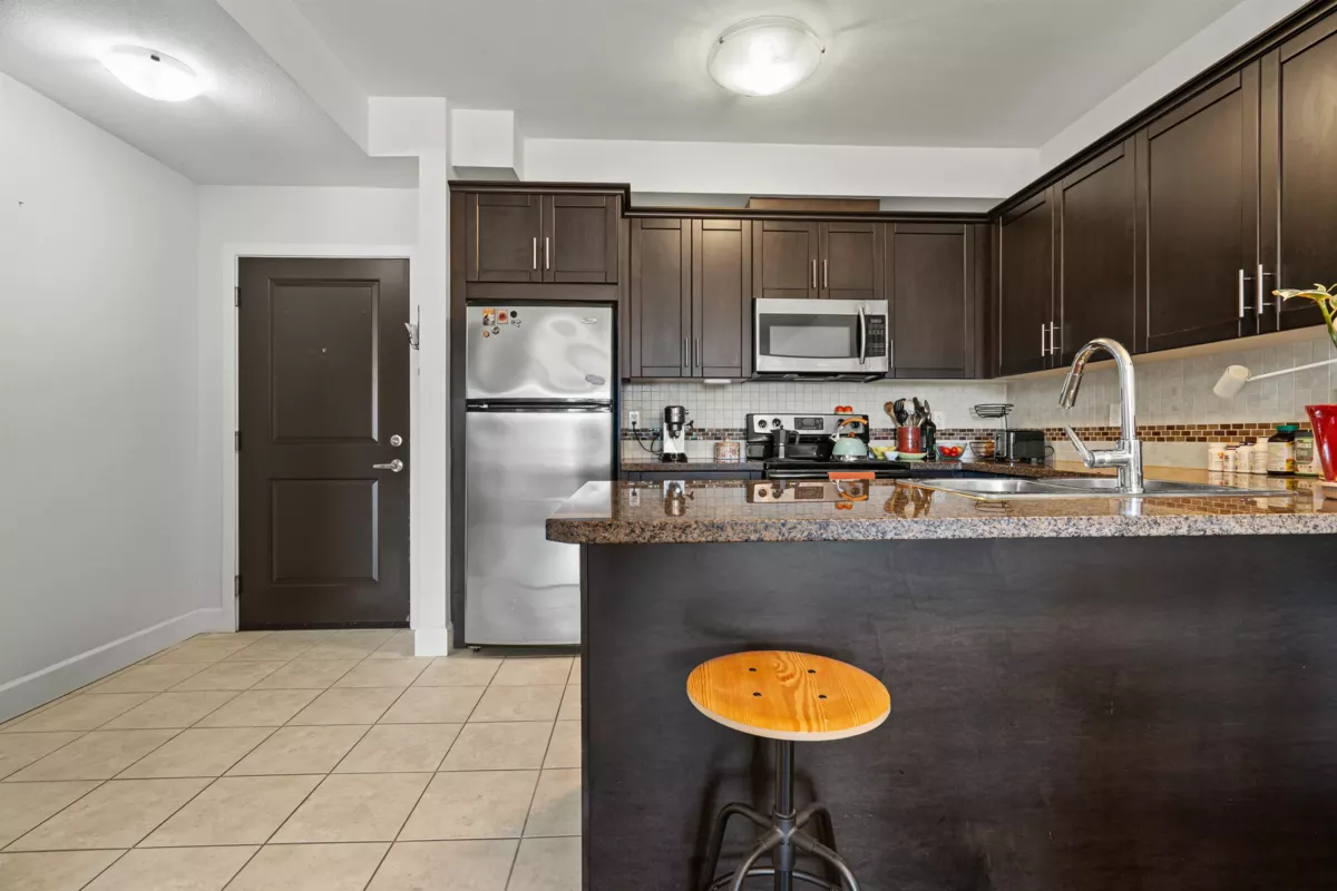 Immaculate South Facing 1 Bed & Den / 1 Bath Condo at The Summit! This bright unit is turn-key, with beautiful mountain views quietly tucked away from the road, with tons of natural light pouring through. Featuring an open concept kitchen with stainless steel appliances, granite counter tops, gorgeous shaker cabinets, plenty of storage space, a spacious primary bedroom w/ walk-in-closet, and a large private balcony space. This is one of the most functional floorplans in the building, offering versatile condo living. Only steps to shops & dining at District 1881, and all levels of schools are within 5 minutes! This unit comes with a storage locker, and secure underground parking. Making it a perfect spot for first-time homebuyers, investors, or downsizers! Incredible value here!