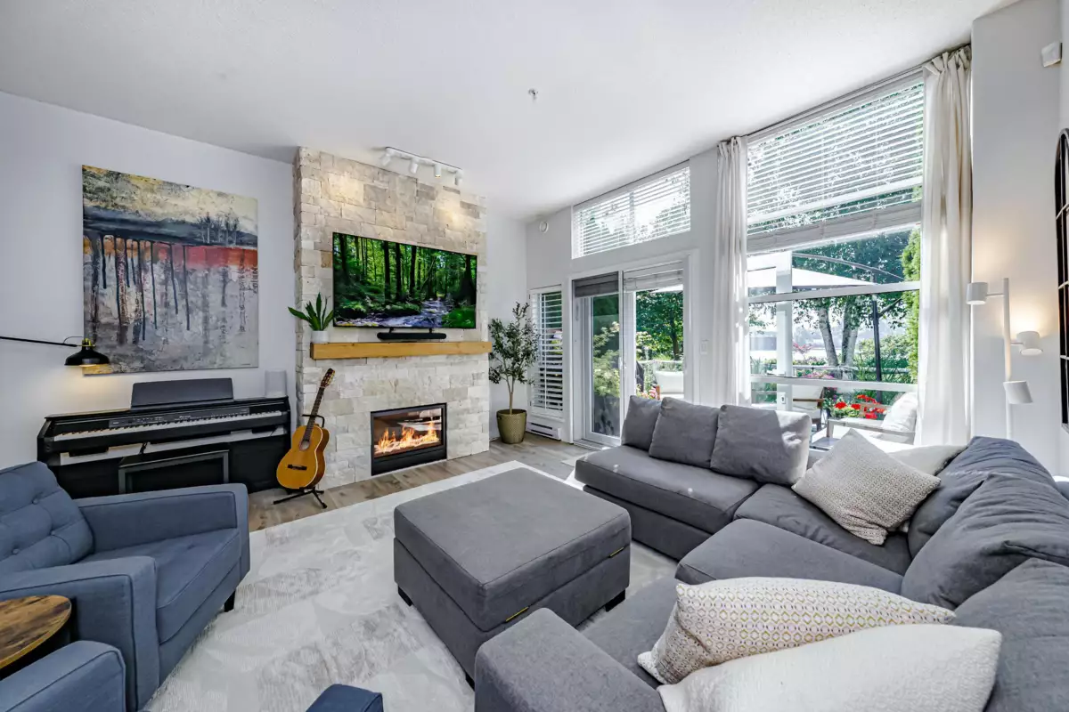 WATERFRONT Living at its Finest! Experience luxury in this spacious 3-bedroom, 3.5-bath home w/den & incredible outdoor space, all boasting stunning waterfront views. You'll love the bright, open layout with a 10-foot living room ceiling & a tranquil setting that captures breathtaking water views. This home has been thoughtfully renovated, featuring updated kitchen, SS appliances, & quartz counters. A new B-vent fireplace is super efficient with a blower, providing a warm ambience. Enjoy the outdoors on two sunny decks. The unit also includes ample in-suite storage and two secure parking spots. The building offers fantastic amenities, including a gym, hot tub, and party room. Located in a desirable neighbourhood, you'll have miles of scenic waterfront trails right at your doorstep.