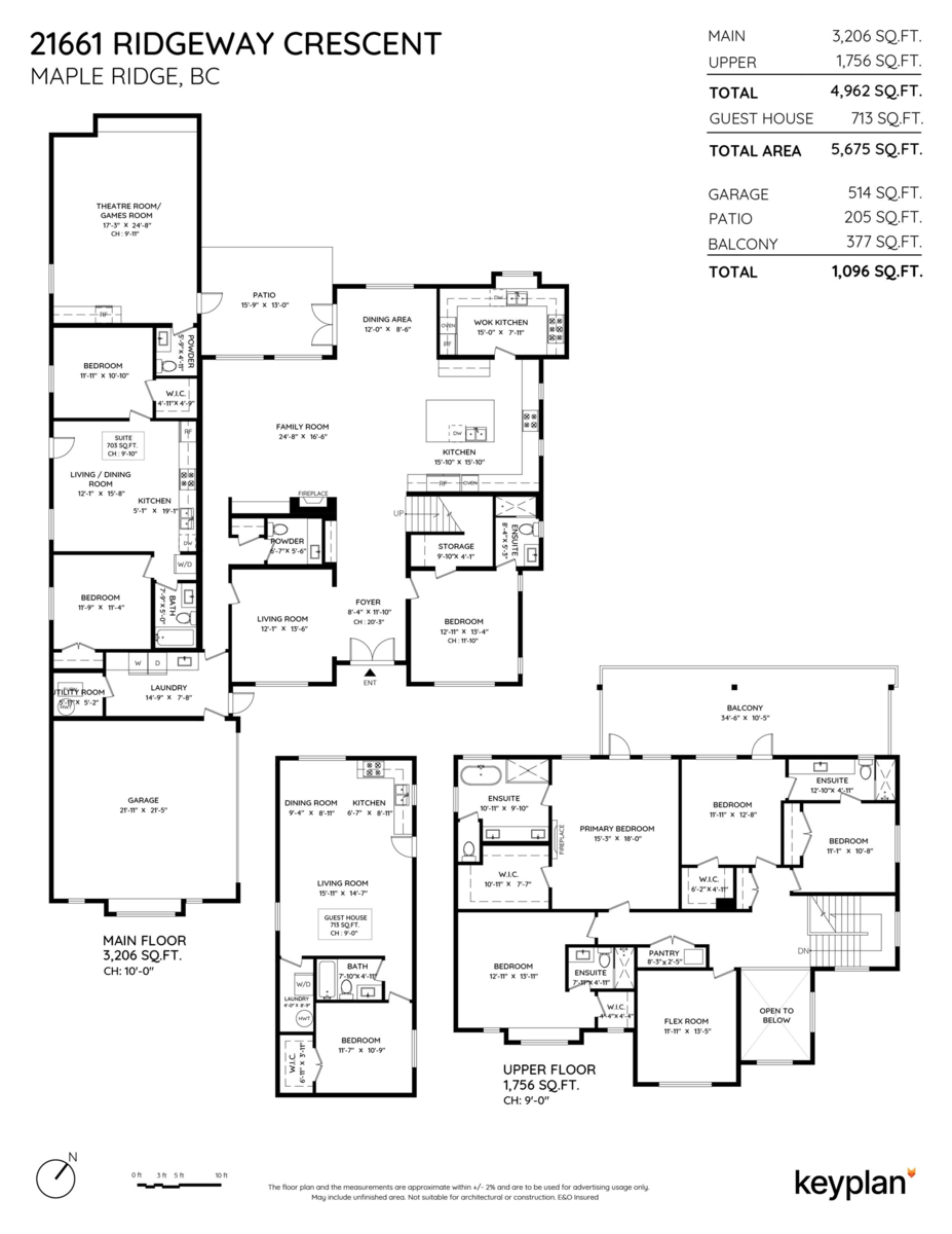 Experience luxury living in this 5,675 SQFT dream home, combining elegance and modern design on a 15,000+ SQFT lot. The gourmet kitchen boasts quartz countertops, a SUB-ZERO fridge, FULGOR MILANO wall/steam ovens, an induction cooktop & a fully equipped spice kitchen. The family room features a gas fireplace & custom Lamborghini wallpaper, while the main floor also includes a living room, powder room, theatre & private ensuite. Upstairs offers 4 bedrooms, 3 baths, a versatile flex room & a large balcony with mountain views. Modern comforts include central air, CCTV, Nest thermostats, irrigation, a double garage & 6-car driveway. Bonus: legal 2-bed suite + 1-bed guest house for added space or a mortgage helper. Showings by appointment only.