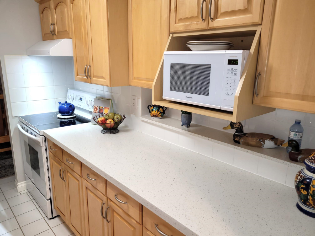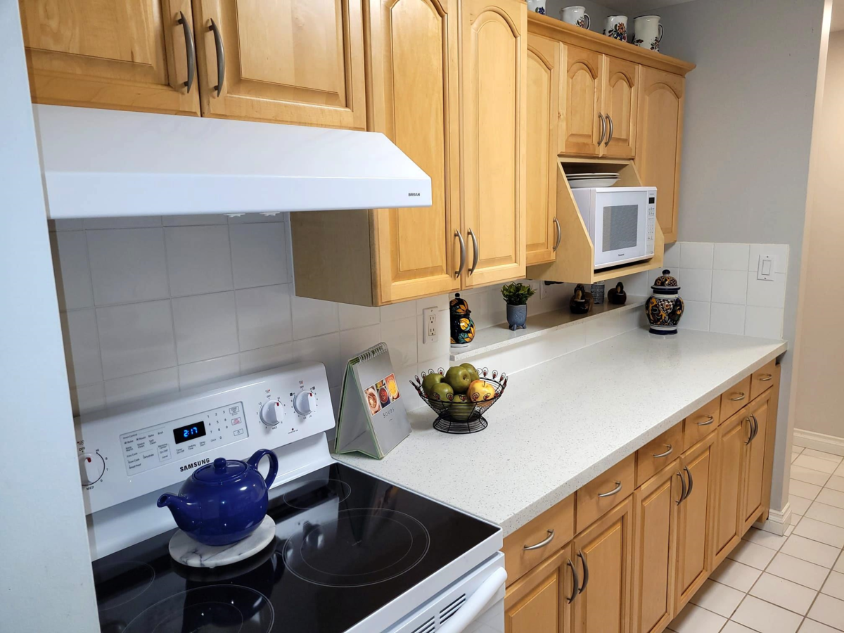 TREMENDOUS value for this adorable & affordable 2 bedroom / 1.5 bath in popular APPLE GREENE. This home is in EXCELLENT condition and boasts updated kitchen and baths and a COVERED balcony overlooking a QUIET neighbourhood. Features maple kitchen, quartz counters, LUXURY Vinyl wide plank flooring, built-in closet organizer system in PRIMARY Suite's walk-in closet. Mere steps to Seafair Shopping Centre, West Richmond Recreation Centre and golf at the Pitch & Putt. Monthly maintenance fees include Heat & Hot Water, plus City of Richmond utility tax. Enjoy expansive greenspaces and incredibly amenities, Including Indoor & Outdoor pools, a hot tub, sauna, gym and clubhouse. PLUS: covered parking, extra storage space for the owner & visitor parking onsite.