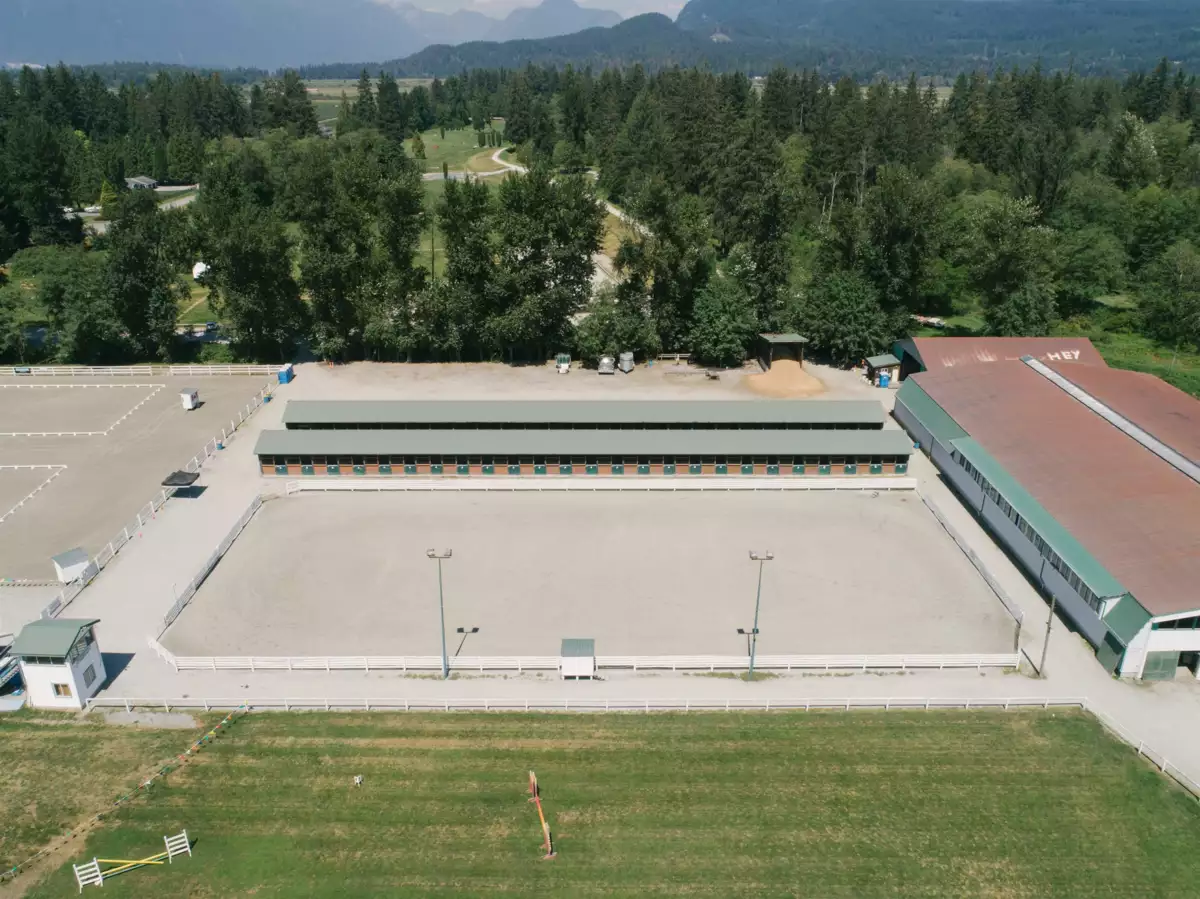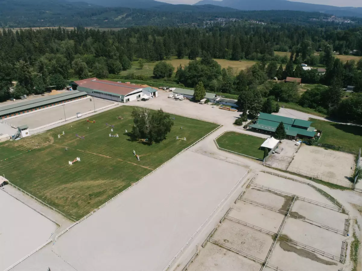 Introducing the iconic Maple Ridge Equi-Sport Centre, a premier equestrian show facility that stands unrivaled! This one-of-a-kind property boasts an impressive 161 stalls and 27 paddocks, w/ room for expansion. Enjoy the luxury of four outdoor riding rings, grass riding ring and a spacious indoor arena, offering endless possibilities for equestrian enthusiasts. As an added bonus, the Ranch Pub & Grill is a fully operational restaurant, perfect for unwinding after a day of riding. Boasting multiple road frontages, this property offers exceptional accessibility & visibility. Perfect for maximizing exposure and opportunities! Nestled on a stunning flat acreage with breathtaking mountain views, a 5 Bedroom & 2 Bath Home, this is more than a facility—it's a dream destination for horse lovers!