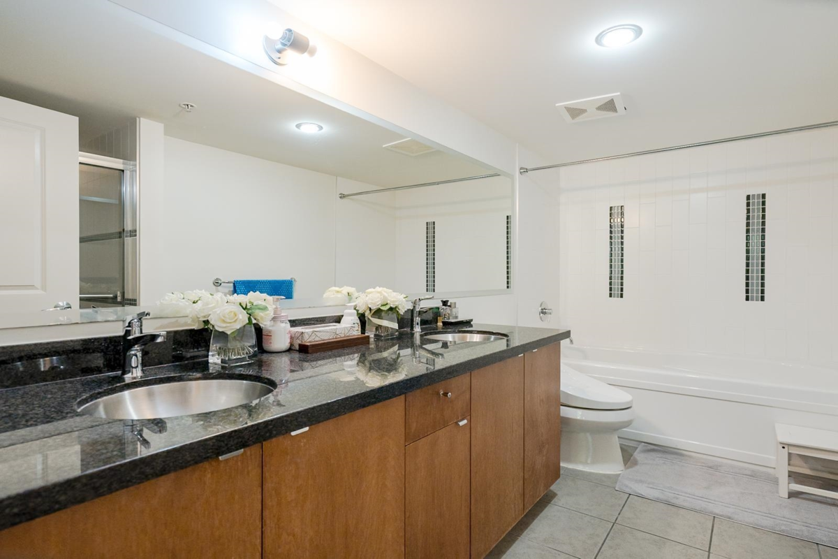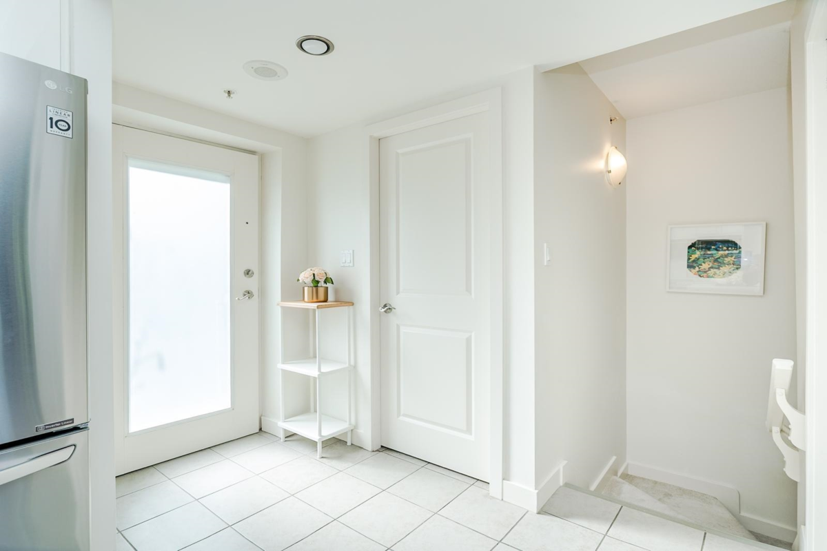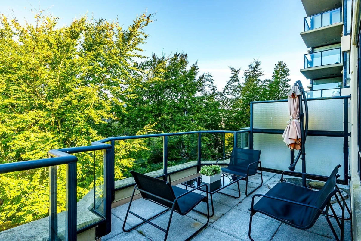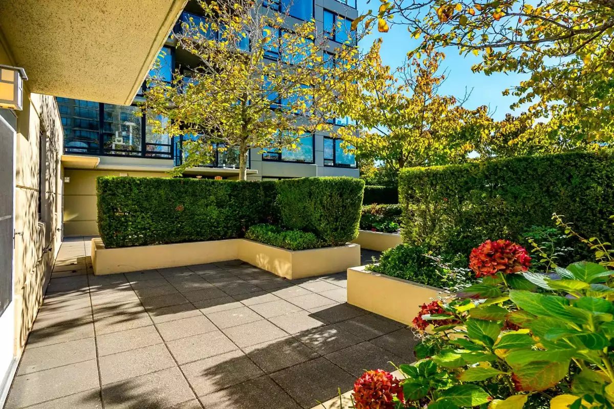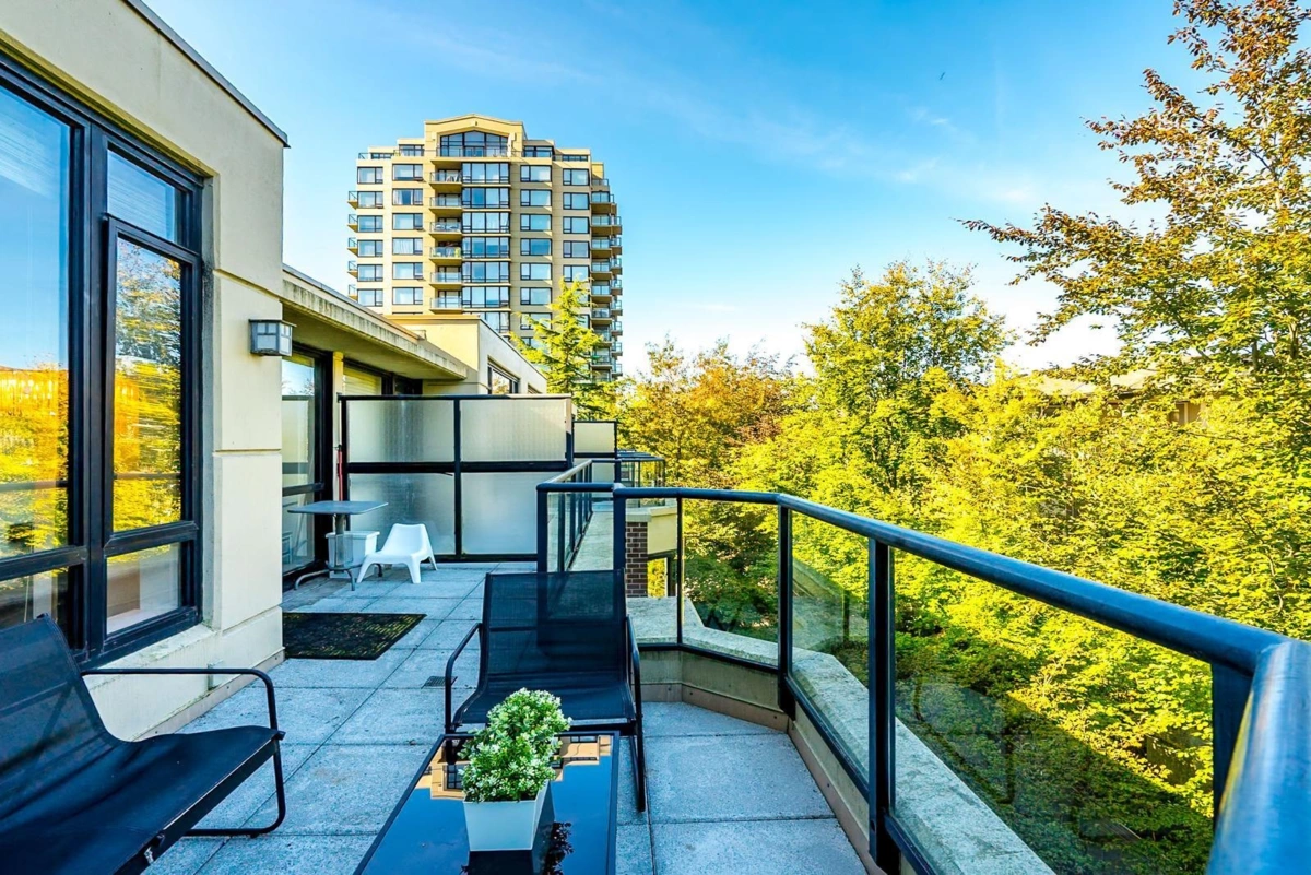 Quiet North/South facing upper 2 level concrete townhomes in Hamptons Park. Enjoy your resort lifestyle with 300s.f. front and back private terrace garden patio, steps to indoor swimming pool, hot tub, steam and sauna room, gym & recreation room. New laminated h/w flooring in living room, new paints, newer kitchen with s/s appliances. Functional layout with 9 ft. ceilings in living room , 2 spacious bedrooms + flex room (can be a den or 3rd bedroom), 2-1/2 baths, easy access to the secured parking. Great location close to Parks, tennis court, schools, restaurants, shops and transit etc. Open house Nov 23 Sun 3-5 p.m.