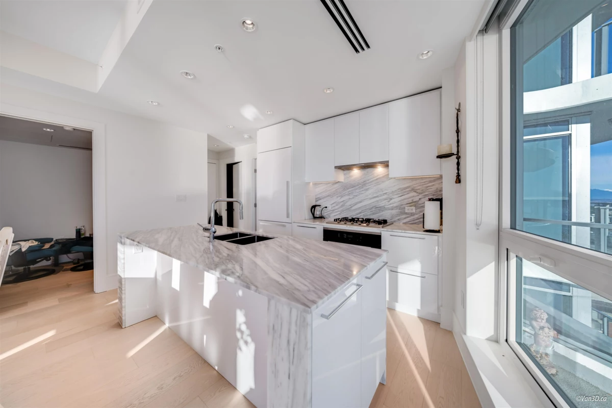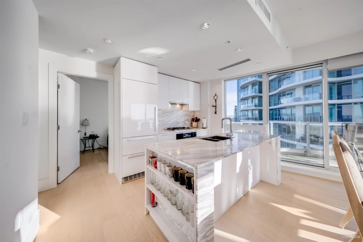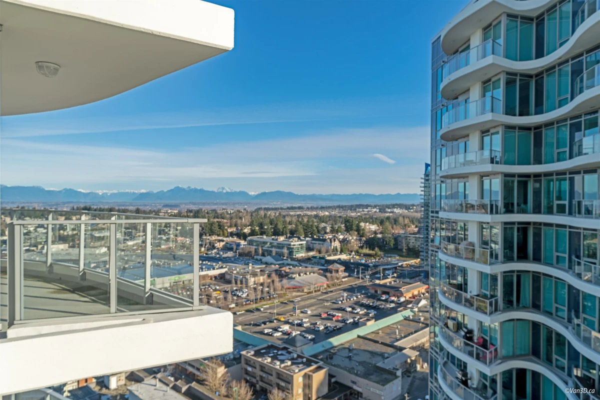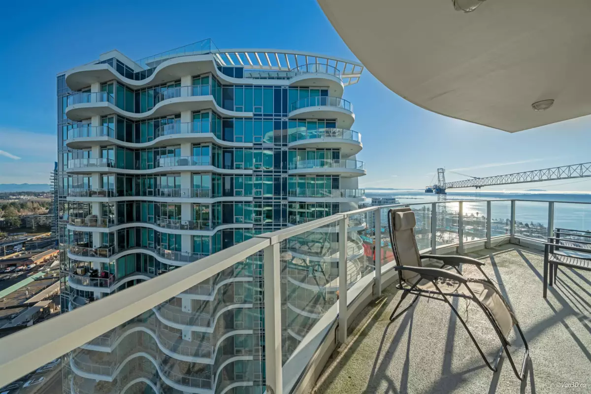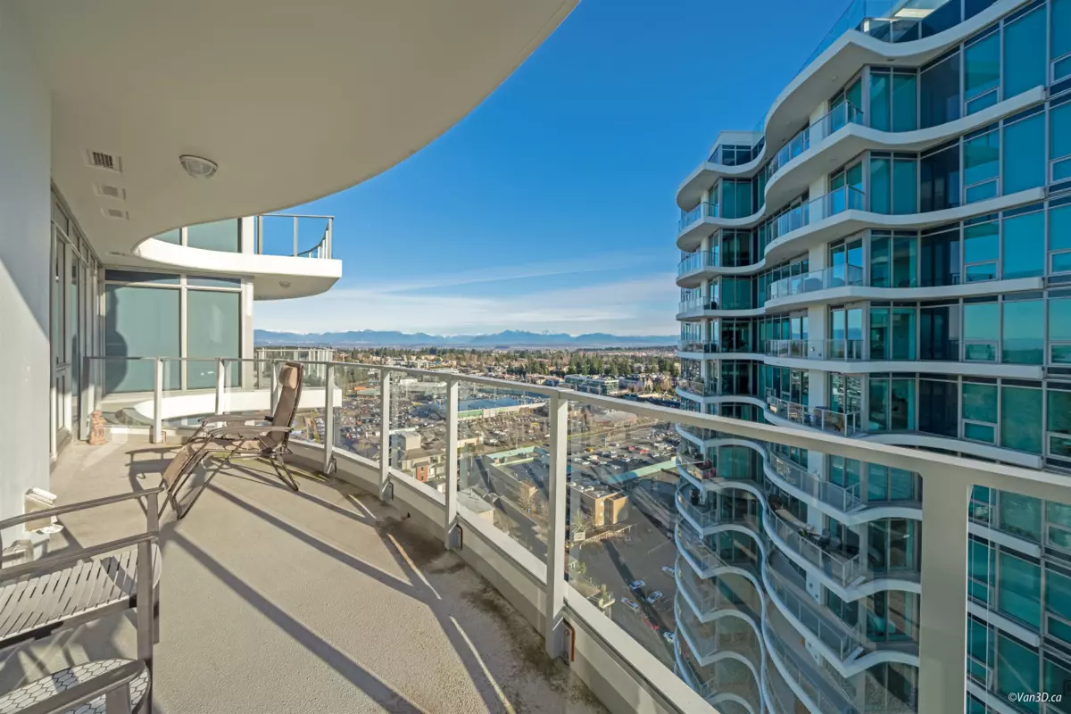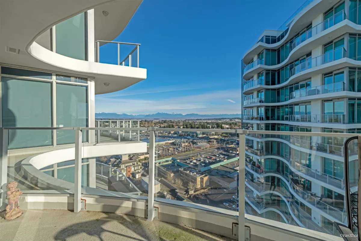 Welcome to this exquisite luxury residence, The LANDMARK of White Rock. This sophisticated 1-bedroom unit, accompanied by an expansive den that easily doubles as a second bedroom. This residence has South East facing direction of OCEAN and Mountain View on 22nd floor(Highest one bedroom), complete with air conditioning, engineered hardwood flooring, a full-size washer and dryer, and Top Tier "Miele" appliances package. Building's impressive 10,000 square feet amenities of indoor/outdoor pool, a well-equipped gym, and the convenience of a full-service concierge. Walking distance to catchment school White Rock Elementary and Semiahmoo High School.