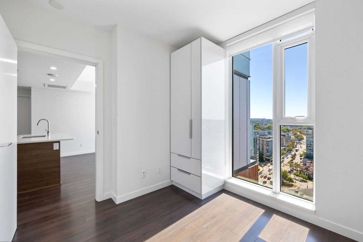 NEW PRICE! Showpiece sub-penthouse at The Independent in Mount Pleasant! This 1 BED + DEN home sits on the quiet, sunny side of the building. The contemporary kitchen features integrated appliances, stone countertops, and a functional island that’s perfect for cooking or entertaining. Versatile den provides ideal work-from-home setup, while the balcony has an undeniable luxury view. The spa-like bathroom invites you to unwind, and with air conditioning, wide-plank laminate floors, and thoughtful design throughout, this home is a perfect ten. Step outside your door onto 20,000 sq ft of resort-style amenities: fully equipped gym, party room, guest suites, dog wash, BBQ, garden plots, and courtyards. All in the heart of Mount Pleasant - A flawless starter or smart investment! OPEN SAT 2-4.
