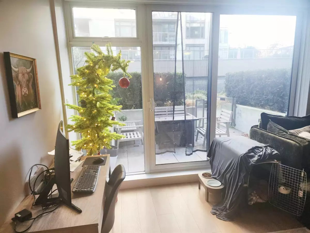 Welcome to TOWER GREEN at WEST! Urban luxury with seamless indoor-outdoor living. This rare Podium Level Jr. 1 Bed + Flex offers an open, light-filled layout with floor-to-ceiling windows. Enjoy a gourmet kitchen with sleek S/S appliances, quartz counters, and custom millwork. The Flex space is perfect for a home office. The showstopper: an oversized private patio, ideal for dining, morning coffee, or relaxing in your own urban retreat. Amenities include a pro gym, rooftop terrace, and social room, all steps to the Seawall, dining, and transit. **OPEN HOUSE: Sat/Sun, Nov 29/30, 2-4 /1-3PM**Some photos have been virtually staged.Please NOTE: OPEN HOUSE ON SUNDAY CHANGED TO 1:00-3:00