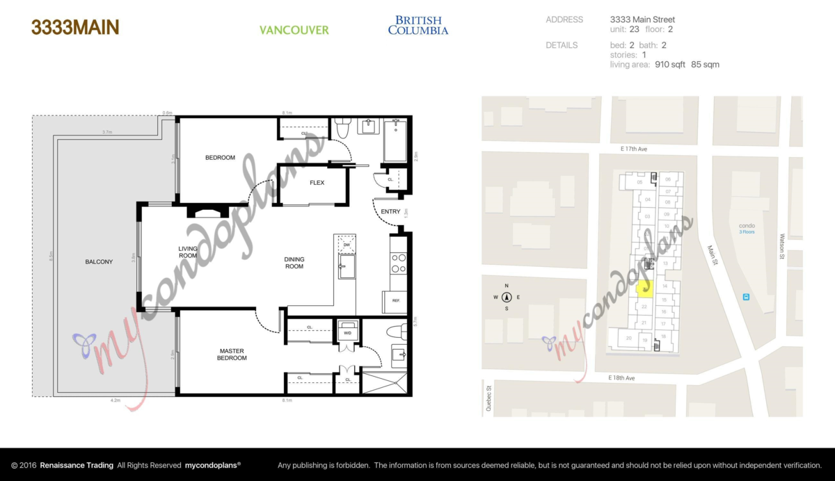 Don’t miss this stunning 2 Bed + Den, 2 Bath gem in the heart of vibrant Main Street! Boasting 911 sq. ft. of stylish living with a king-sized primary, gourmet kitchen, 9 ft ceilings, and hardwood floors—this home blends luxury and comfort. Step out to your massive 320 sq. ft. private deck with gas BBQ hookup—perfect for entertaining! Enjoy the community garden right outside your door, low strata fees, and peace of mind in a well-maintained 12-year-old building. Quiet western exposure, parking & storage included. Live steps from trendy shops, cafes, schools & parks in one of Vancouver’s most desirable neighbourhoods. .. Newly Painted with quick possession available! ( exceptional layout, with bedroom Separated across hall, and each bed having access bathroom, 10 Ft Ceilings )