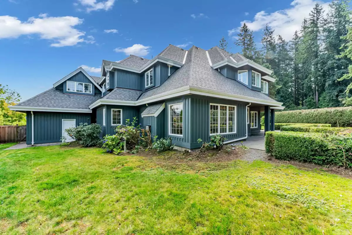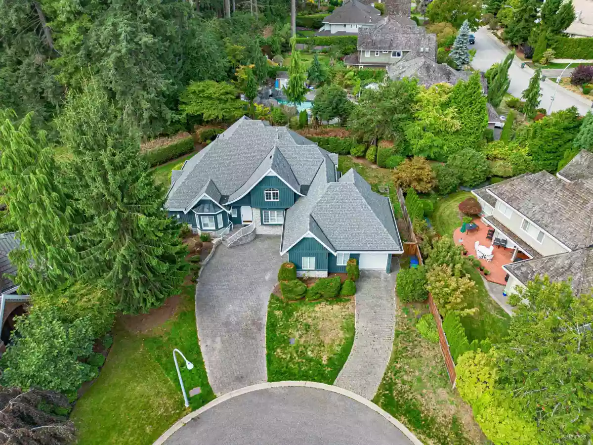 Beautifully crafted 3,717 sq. ft. custom home on a quiet 13,939 sq. ft. cul-de-sac lot in prestigious Chantrell Estates, backing onto Dogwood Park and trails, steps from Elgin Park Secondary. Featuring 4 bedrooms, 4 full bathrooms, and a versatile games room. This residence offers exceptional space and flexibility. The gourmet kitchen boasts granite countertops, solid wood cabinetry, and French doors opening to a sun-filled patio and private backyard. New paint 2025, New roof in 2022.