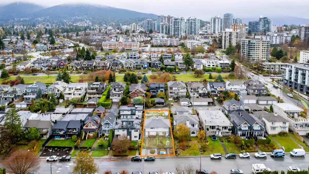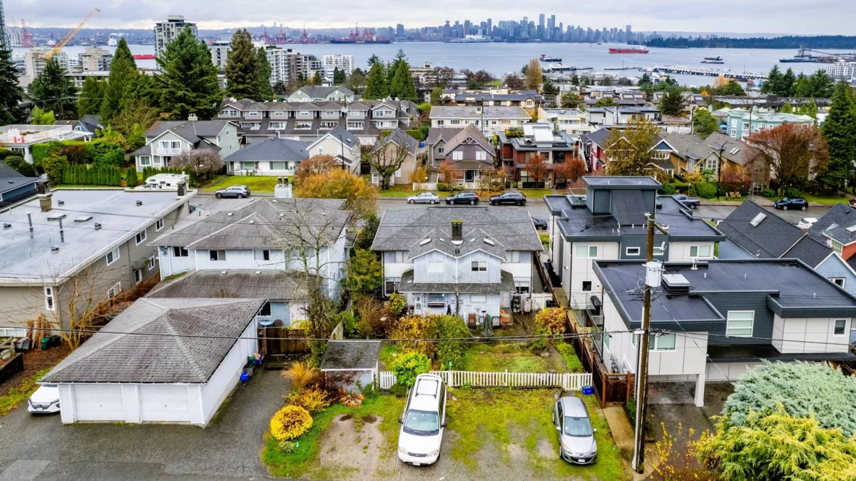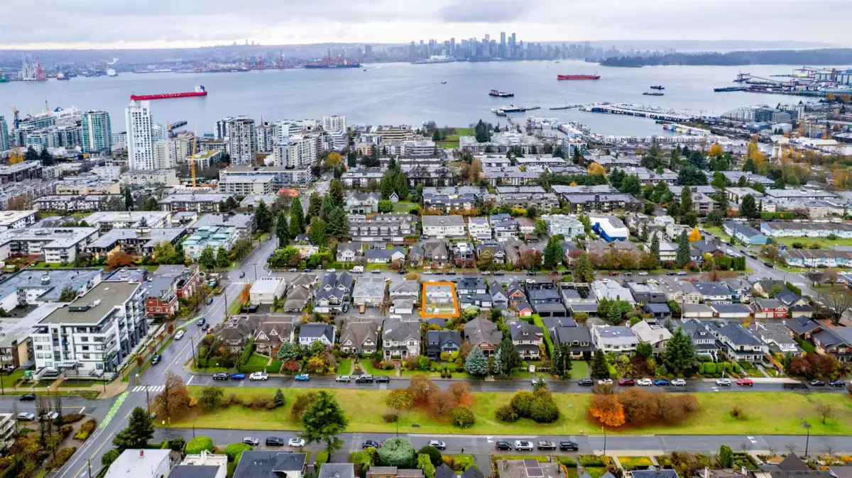Fantastic opportunity to own this south facing side by side Lower Lonsdale duplex with post card water and downtown views! Each side enjoys living, kitchen, and dining on main and two bedrooms, one full bath, & laundry room upstairs totaling just under 1200 sqft each side. Whether you live in one while you rent the other, are multi-generational living side by side, looking to invest, or build in a prime location, the options abound! RT1 zoned with CNV work completed increasing density from .5 to .75 FSR - allows for new duplex, triplex, and townhomes. Steps to the shopping, dining, and lifestyle amenities lower Lonsdale offers...this is a gem of a property in the heart of the City!