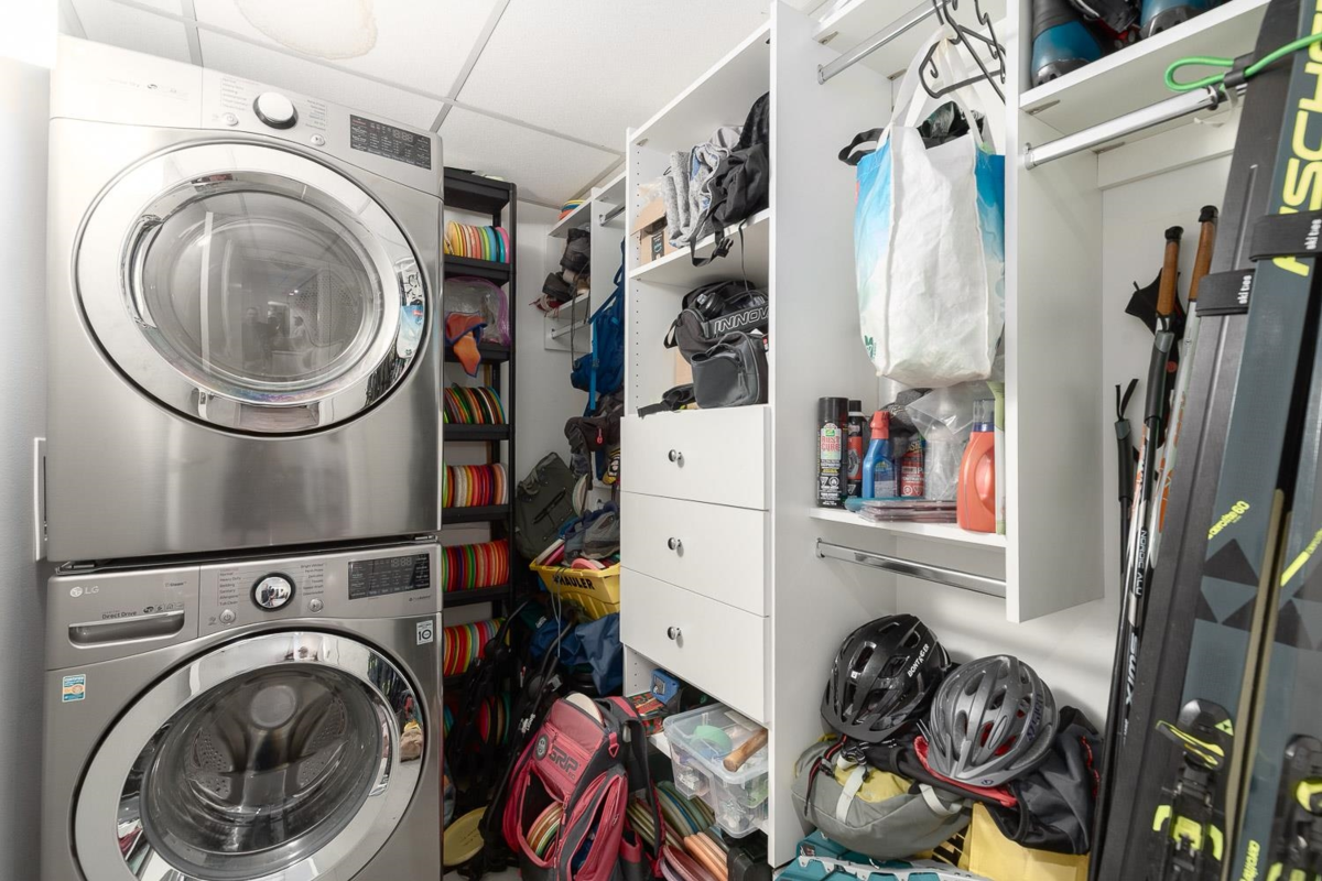 South-facing modern designer home - former developer showroom - flooded with natural light and meticulously maintained. Features over-height ceilings, engineered hardwood, roller blinds, built-in workstation, and custom TV millwork. Efficient heating/cooling system/ The signature Cressey Kitchen boasts high-gloss cabinetry, integrated European appliances, gas cooktop, new dishwasher (2024), and washer /dryer (2022). Includes 2 secured parking stalls + storage locker. Amenities: gym, rooftop terrace, party lounge. Pet & rental friendly. Steps to Seawall, Olympic Village, transit, shops & breweries.