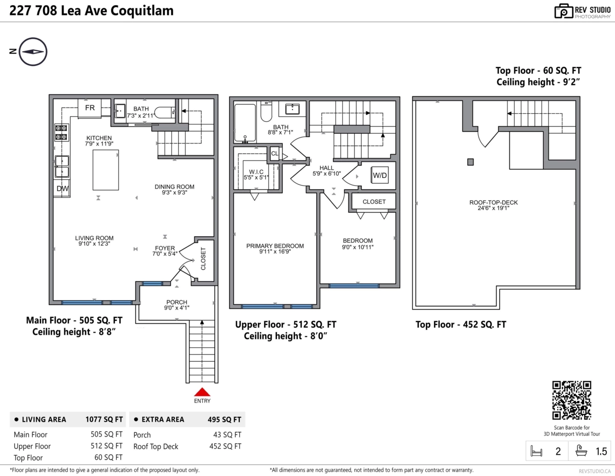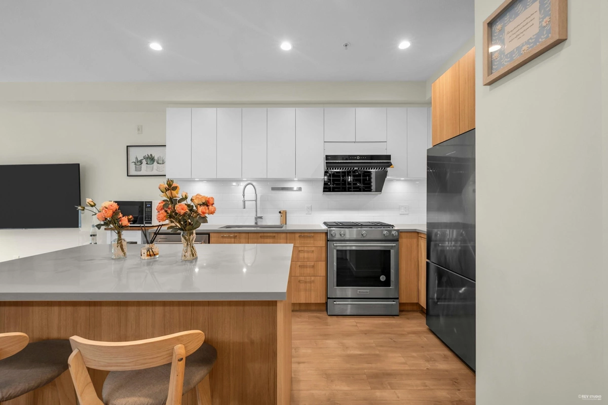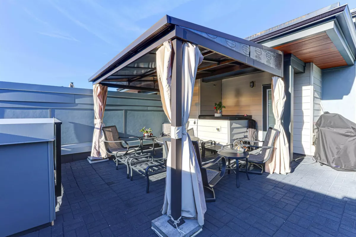 Duet II Cityhome of 2 Bedrooms Townhouse with massive 405 SQF Rooftop patio with absolutely beautiful mountain views. Located at the heart of Burquitlam in west Coquitlam, just walking distance to skytrain station, shopping center and parks. Built with Mas timber wood by very well known developer ADERA. High Quality Laminate floor, Quartz Counters, Stainless Appliances. Parking and 2 Storages. Main Floor offers open concept floorplan with large Living room , Formal Dining room, Gourmet Kitchen and lots of natural lights from Floor-to-celling windows. Lots of upgrades and there's a L2 EV Charger ready! You'll fall in love with every detail. A must See! 11/30/2025 , 2pm to 4pm