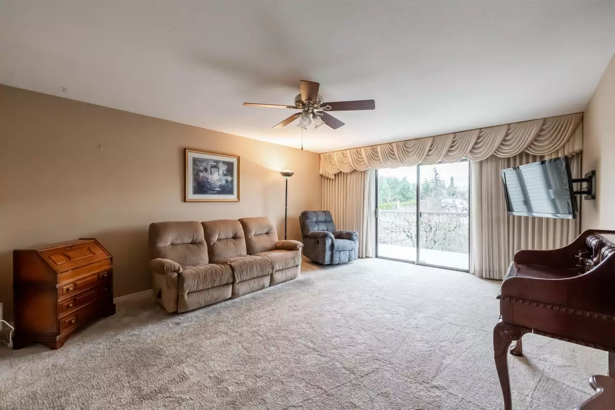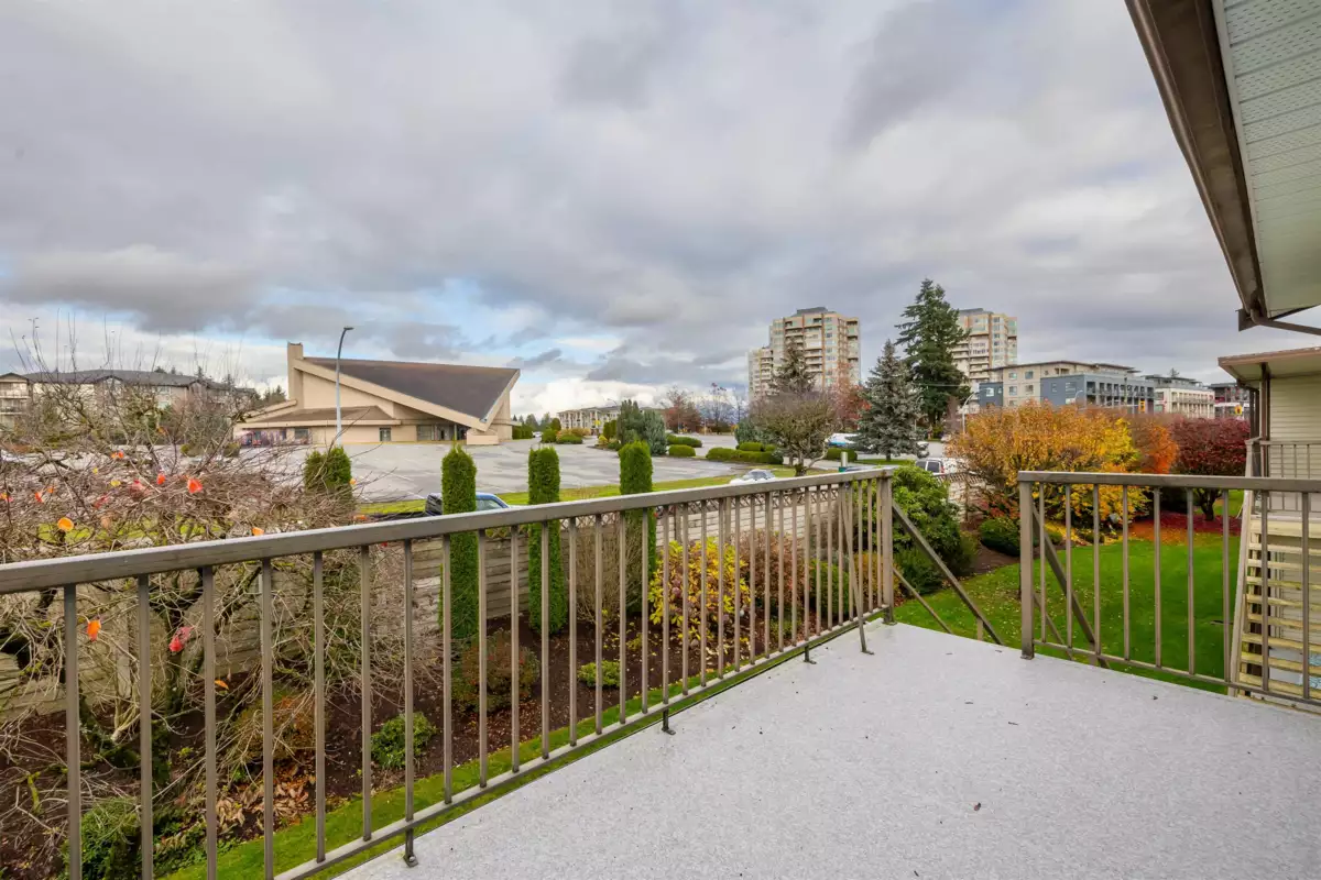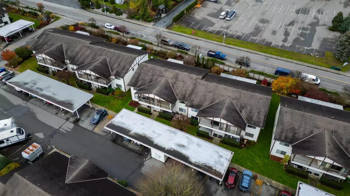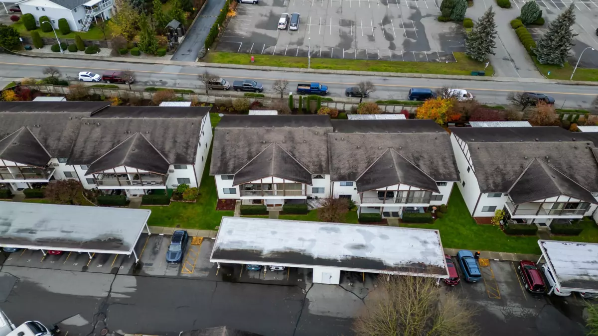 FIRCREST ESTATES in the heart of Abbotsford! This RANCHER STYLE 2 bedroom 2 bathroom upper unit townhouse is in a fantastic 55+ adult oriented community. This well maintained unit boasts 1152 sq ft of spacious living space in incredible original condition. Large living space to entertain and back deck and stairs leading down to the common area greenspace. Covered parking spot out front of unit. Well run complex with RV parking available. Footsteps to Cafes, Trading Post Brewery & shops! Great value!