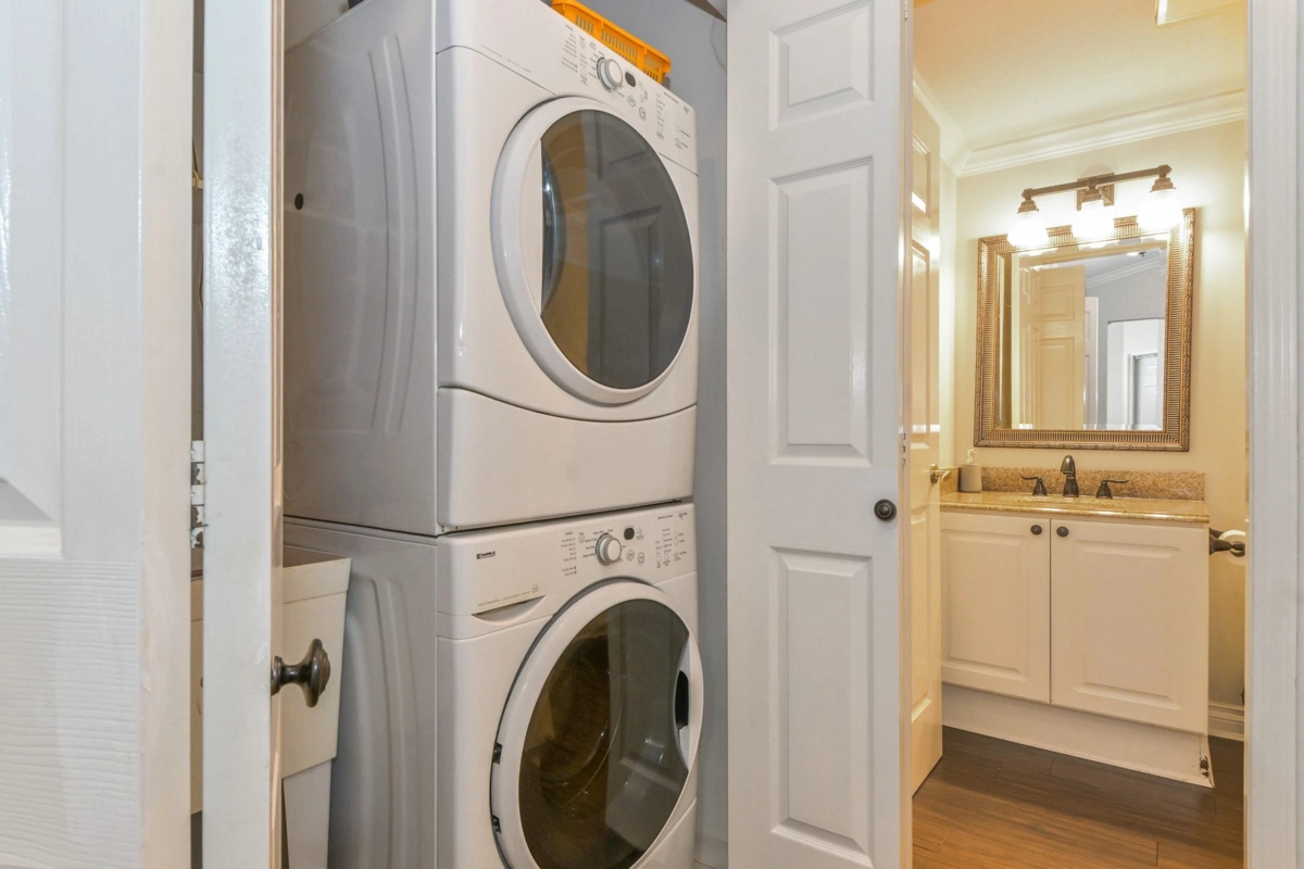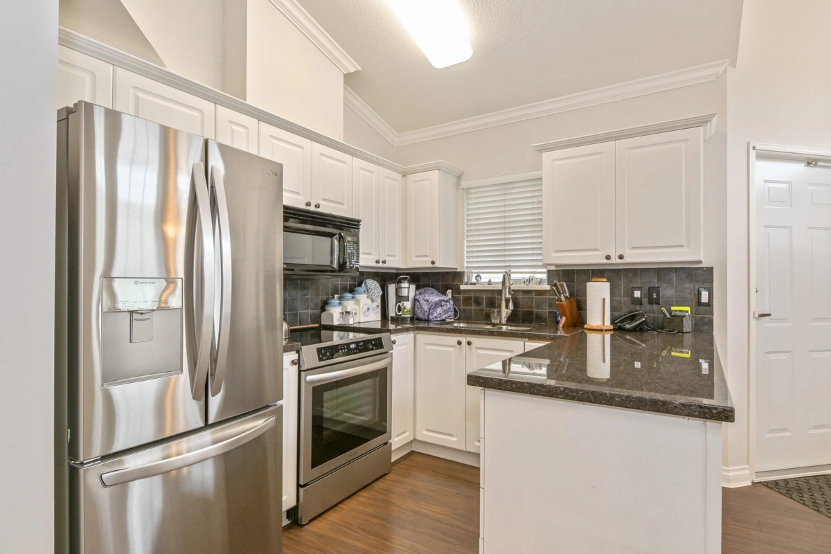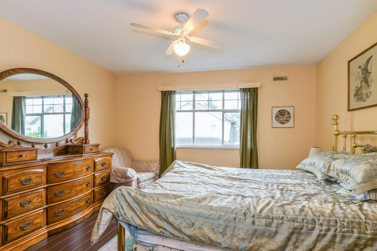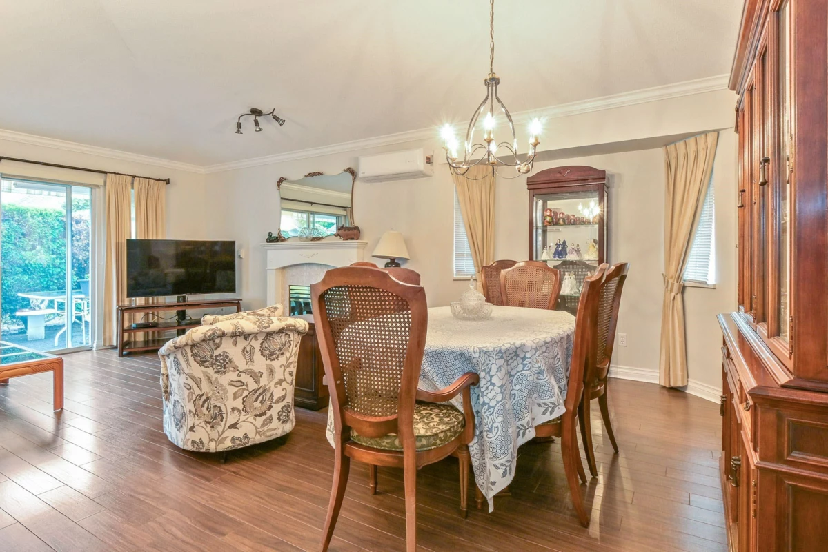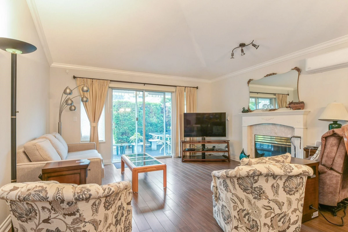 Churchill Park: sought after complex in Walnut Grove, featuring the primary bedroom on the main level with spacious ensuite with separate tub and shower. Interior upgrades include air conditioning, hot water on demand, counter tops with undermount sink, updated fridge and induction stove. The bright and sunny eating area is surrounded by windows with small patio. Laminate flooring on both levels. Spacious and sunny south facing patio off the living room. Located in a quiet area of the complex with privacy screens and trees. This friendly complex offers extensive amenities and is located close to parks and walking trails.