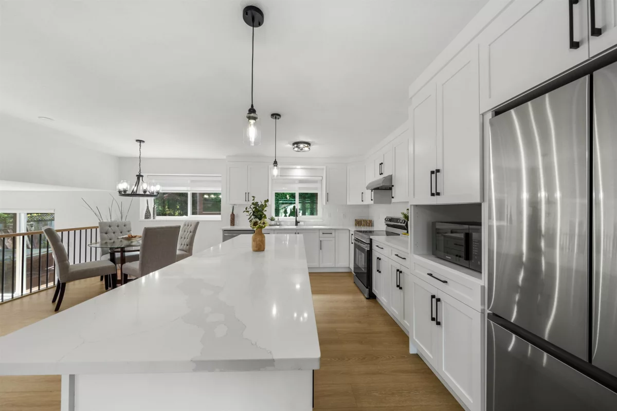 Fully remodeled and move-in ready, welcome to Apple Grove, this beautifully updated 3-bedroom, 3-bath home in the heart of Maple Ridge. Blending modern style with everyday comfort, it’s perfect for families and entertainers alike. The open layout flows from the formal living room into an upscale modern kitchen with timeless style, quartz countertops, stainless appliances, and a large entertainer’s island. Upstairs, the primary suite is a private retreat with a spa-like ensuite. On a rare 6,600 sq ft lot, the backyard offers potential to create your dream garden oasis. Families will love nearby Harry Hooge Elementary and Thomas Haney Secondary, both known for strong programs and community spirit. Steps to parks and transit, this home truly has it all.