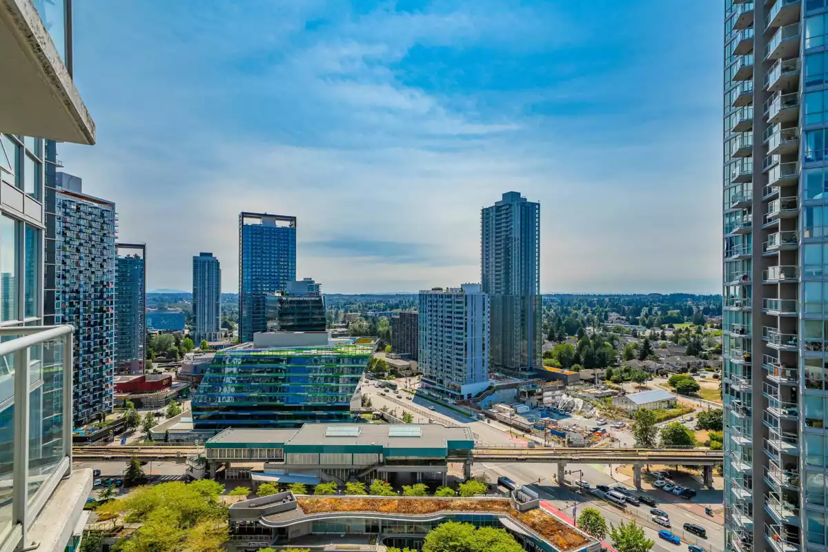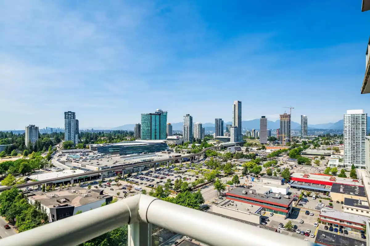 Welcome to Park Place One by Concord Pacific! This bright two-bedroom unit offers stunning north and south views of the city and mountains. Features include an open layout, Corian countertops, stainless steel appliances, eating bar, laminate flooring, and porcelain tile. The master bedroom has near floor-to-ceiling windows, and the second bedroom is spacious and versatile. Located in a concrete high-rise just steps from the SkyTrain, SFU campus, Holland Park, shopping, and entertainment. Amenities include a gym, yoga room, steam room, bowling alley, theatre, lounge with billiard table, rooftop garden, plus 24-hour concierge and parcel service. Includes Parking Stall #170 on P1, to the left of the exit door. Open house at 2-4PM on September 6 (Sat).