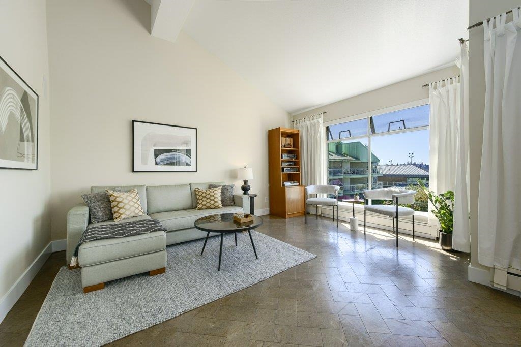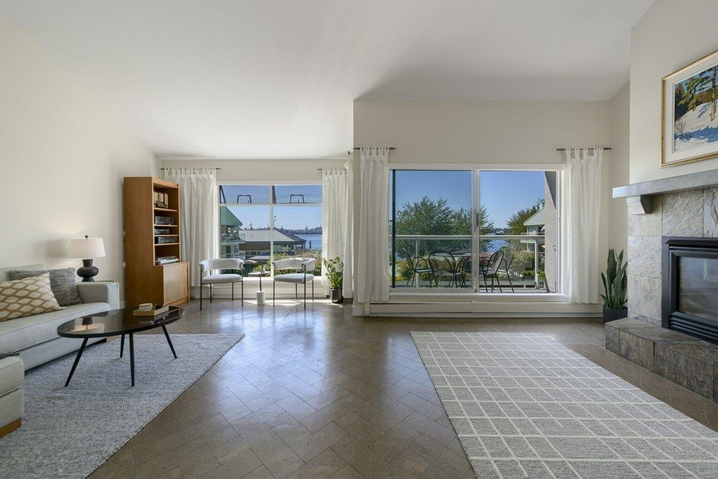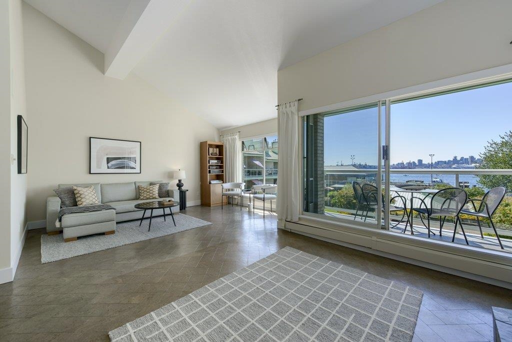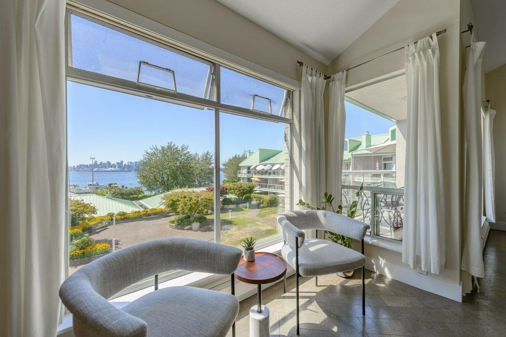 Experience true WATERFRONT living at Harbourview Park in Lower Lonsdale! This stunning top-floor residence offers panoramic city and water views, soaring vaulted ceilings, and an unbeatable location just steps to the Seabus, Quay and vibrant village of Lower Lonsdale. Beautiful finishes throughout, this spacious 2-bedroom, 2-bathroom home features a well designed floor plan includes a main-level bedroom with full bath along with a large kitchen, dining and living room and a spectacular upper-level primary suite complete with a generous walk in closet and abundant storage. In-suite laundry, two side by side parking stalls. Don’t miss this exceptional opportunity to live in one of North Vancouver’s most sought-after locations!
