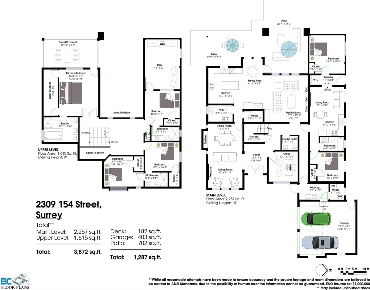 Beautiful contemporary home in South Surrey that blends luxory, functionality, and flexibility. Main floor features large family room and living room withvaulted ceilings. Both a wok kitchen and open-style kitchen are available to suit your culinary needs. Stairway leads to a generous landing on the secondfloor, featuring 4 bedrooms each with ensuite. Dens on both floors allowing dedicated space for work in comfort. Also contains a fully featured ground level10ft ceiling 2-bedroom suite with separate entrance. Jessie Lee Elementary school & Earl Marriott Secondary school catchment. Walking distance to theshopping mall, close to all the amenities. Part of the Semiahmoo towncentre OCP, development potential designated as townhouse residential.