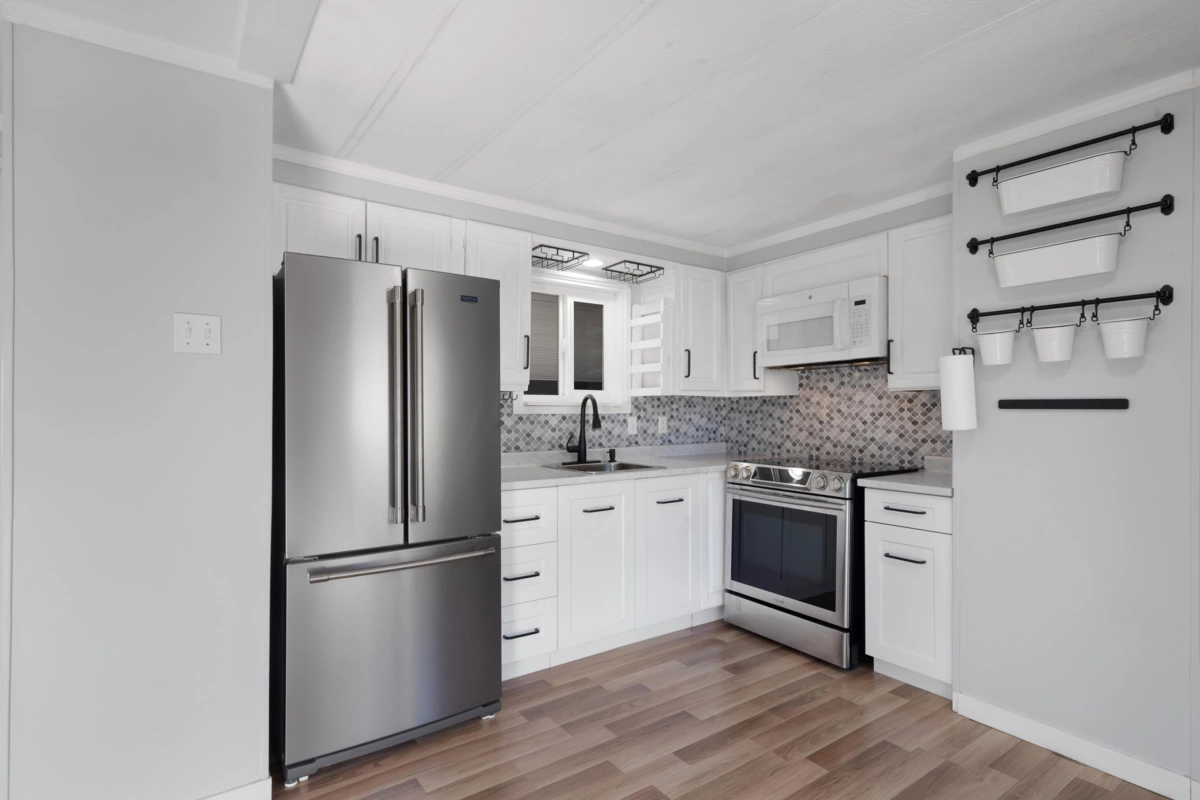 This beautifully updated two bedroom / one bath, mobile home will impress you as soon as you pull up. Some of the great updates include newer vinyl siding & windows, bathroom vanity & toilet, lower kitchen cabinets, newer appliances and fresh paint throughout. Lots of parking and a ton of storage in the garage with nice built in cabinets in the hallway as well. The fenced yard is a perfect size for a garden and the close distance to the amazingly renovated Maple Ridge Park, Alouette River, Davidson's pool and the very popular Black Sheep Pub couldn't be better. Pad fee is $721 and this park allows mortgages! Book your private showing today.