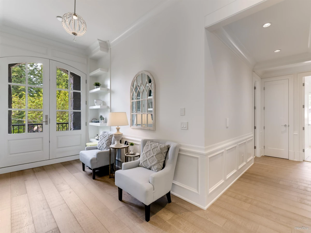 French Country Charm Meets Modern Living! Nestled beside Christopherson Steps park, this elegant 2-storey home is surrounded by multi-million dollar estates. Grand arched entry opens to a formal dining room and spacious living area. The family room features a fireplace and flows into a gourmet kitchen with butler’s pantry and wok kitchen. Double bi-fold doors extend living space outdoors. Main floor also includes a multipurpose room with wet bar, office with coffered ceiling, and a mud/laundry room off the double garage. Upstairs boasts ocean views, a cozy library, luxurious primary suite with sitting area, spa-style ensuite, walk-in closet, and skylight. Plus 3 additional bedrooms and a bonus room.