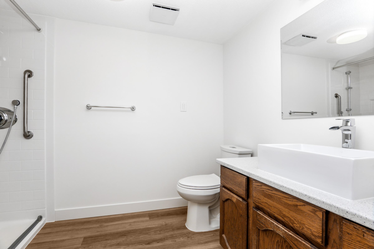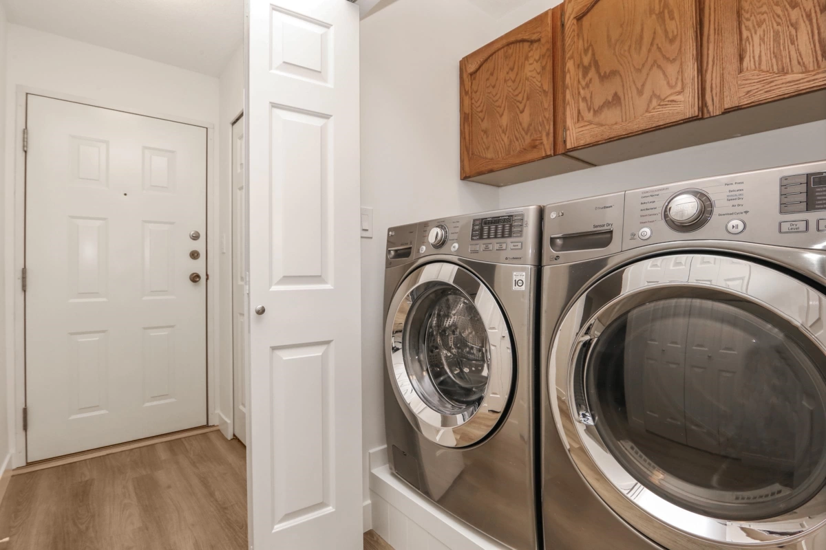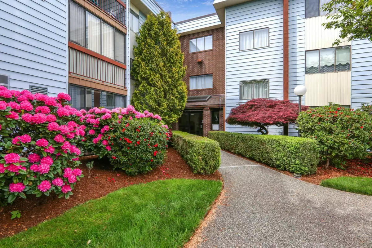 Open to all offers! Quick Possession! Move-in-ready condition, this well-run 55-plus complex is located in central Abbotsford, within walking distance to local shops, restaurants, Doctor offices, transit, & life labs. Over 960 Sq. Ft of living space, plus an enclosed north-facing solarium with storage & a bonus storage locker on the same floor. Features include beautiful new laminate flooring, freshly painted throughout, new baseboards, new light fixtures, new hardware, new bathroom vanity/mirror/ faucet, plus a newer walk–in shower with grab bars, new kitchen countertop/kitchen faucet, & a newer W/D. Good-sized primary bedroom with a WIC, maintenance fees are $447.98, which includes heat & hot water, the building has been re-piped & newer roof, 1 parking with lots of visitor parking & RV