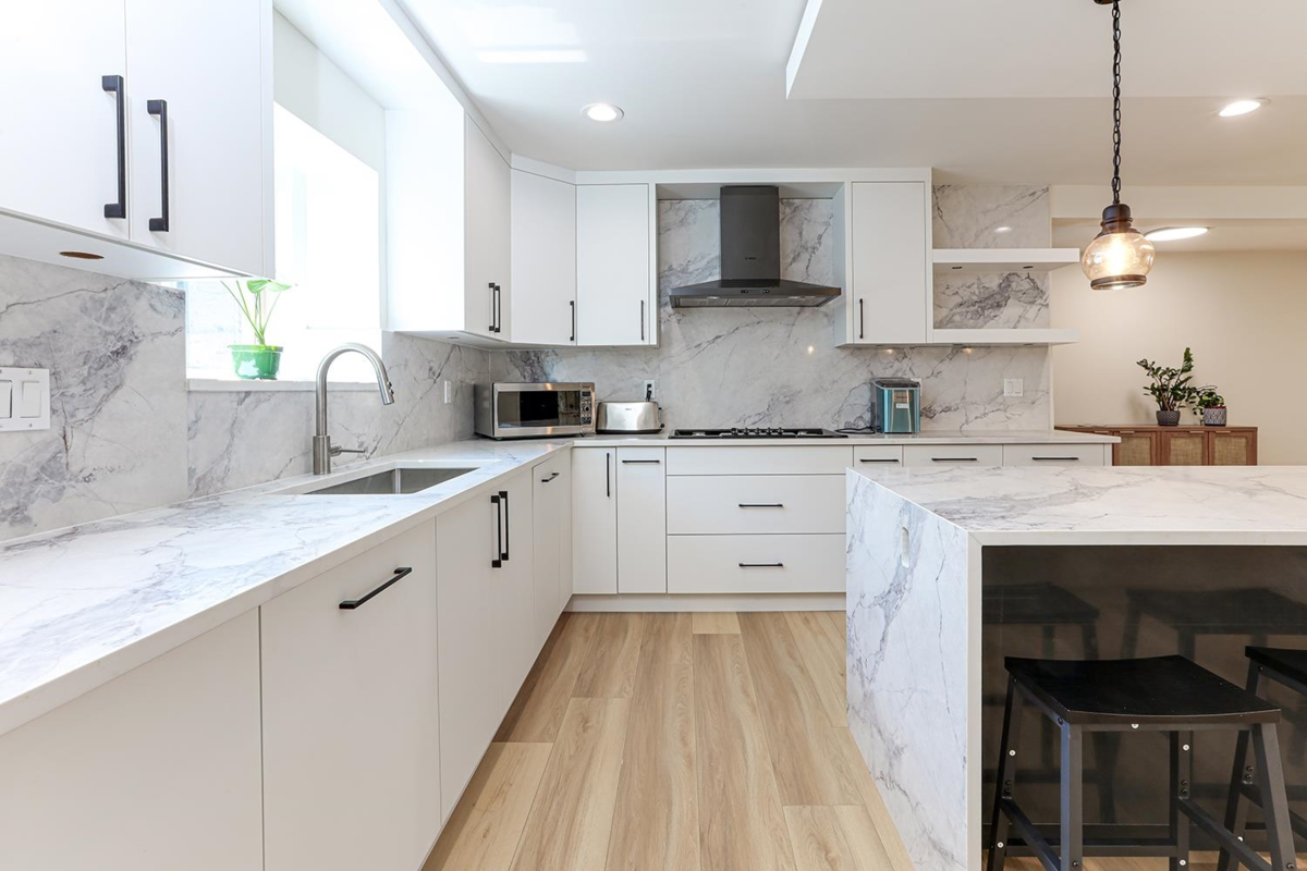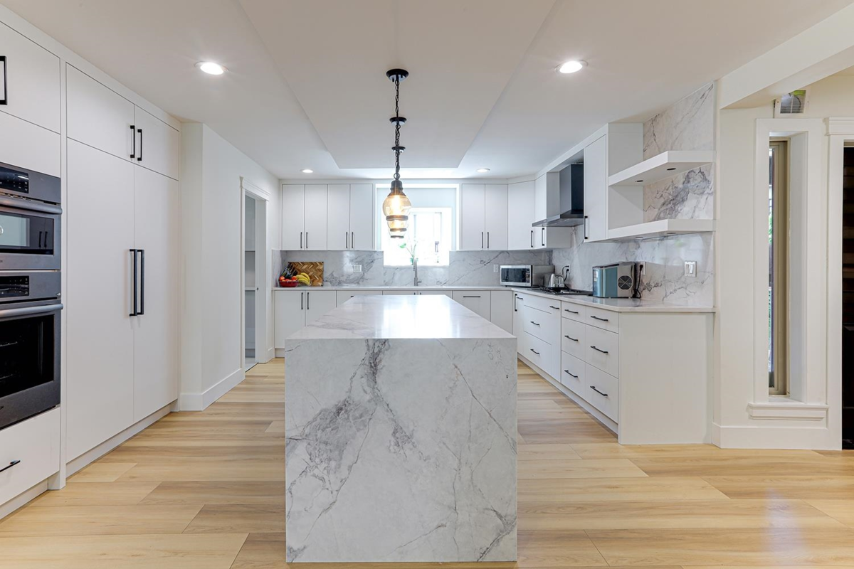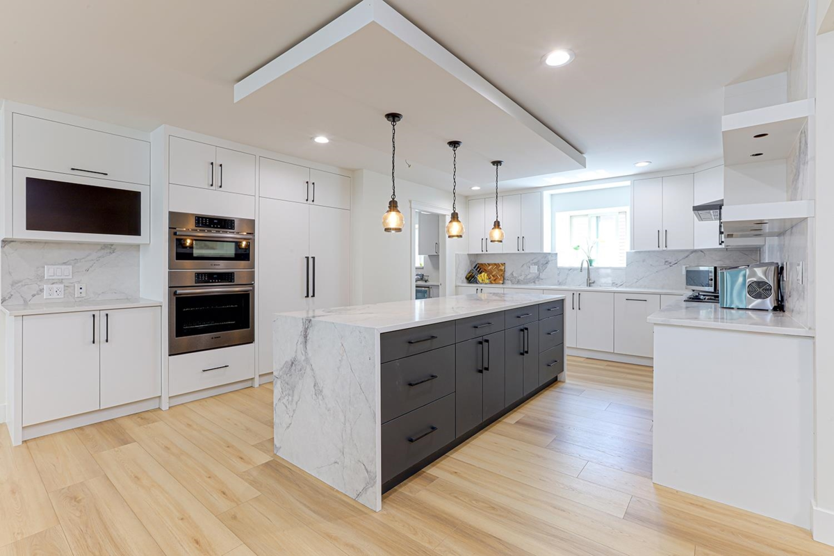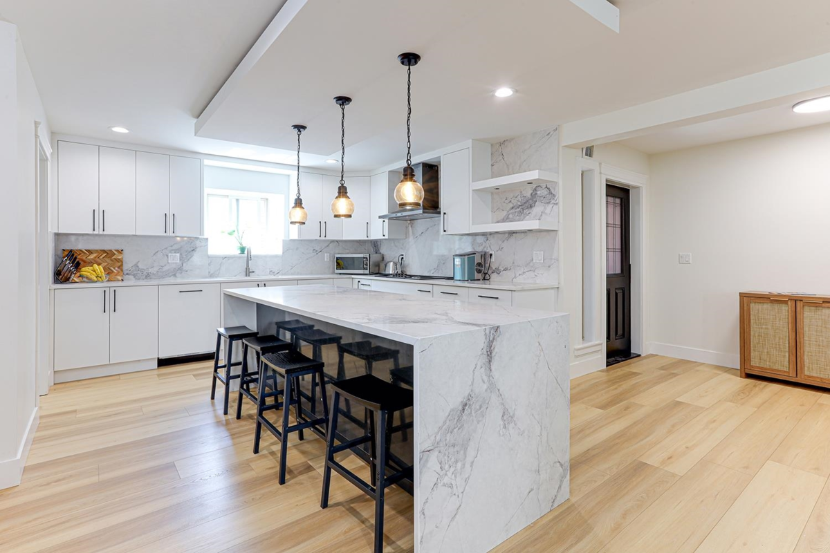 Welcome to this fully renovated, stunning 8-bed, 6-bath home offering luxury, space, and income potential. The main house features 6 spacious bedrooms, a versatile den, two massive open-concept living/dining areas, a large kitchen with island, and a full spice kitchen with walk-in pantry. The primary suite includes a walk-in closet and ensuite. Two self-contained 1-bed basement suites with private entrances offer fantastic mortgage helpers. Enjoy a beautifully landscaped yard with a covered pergola, brick driveway, double garage, and a fenced backyard backing onto a peaceful greenbelt. Located in a quiet neighbourhood near schools, parks, trails, and shopping—this is your perfect family home + investment! Move-in ready.