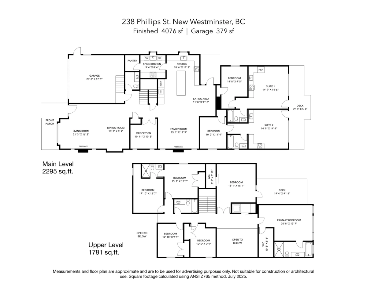 | Above Level | Primary Bedroom | 20'8 x 20'8 ft |