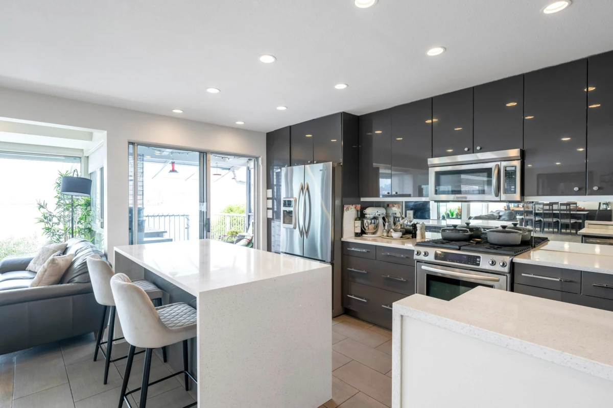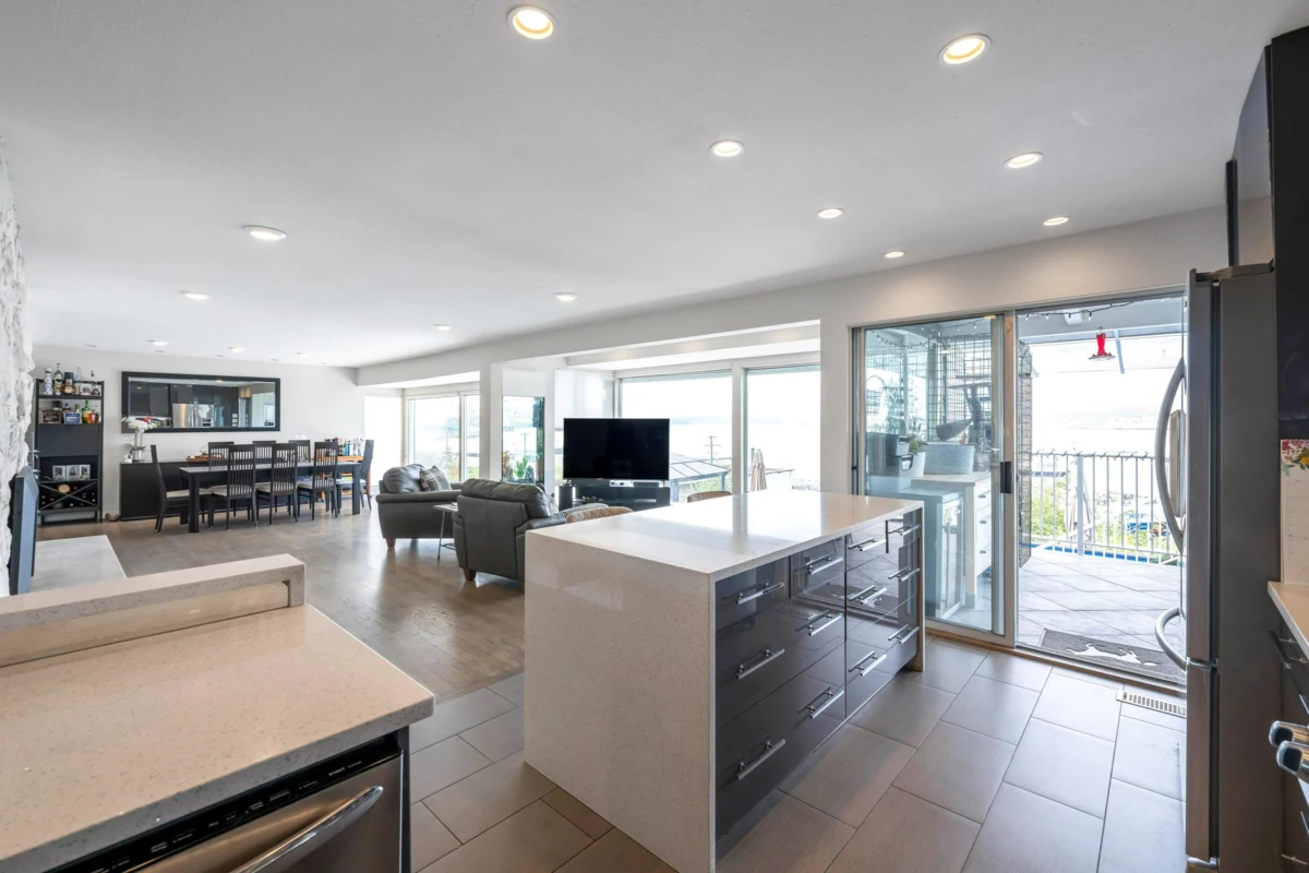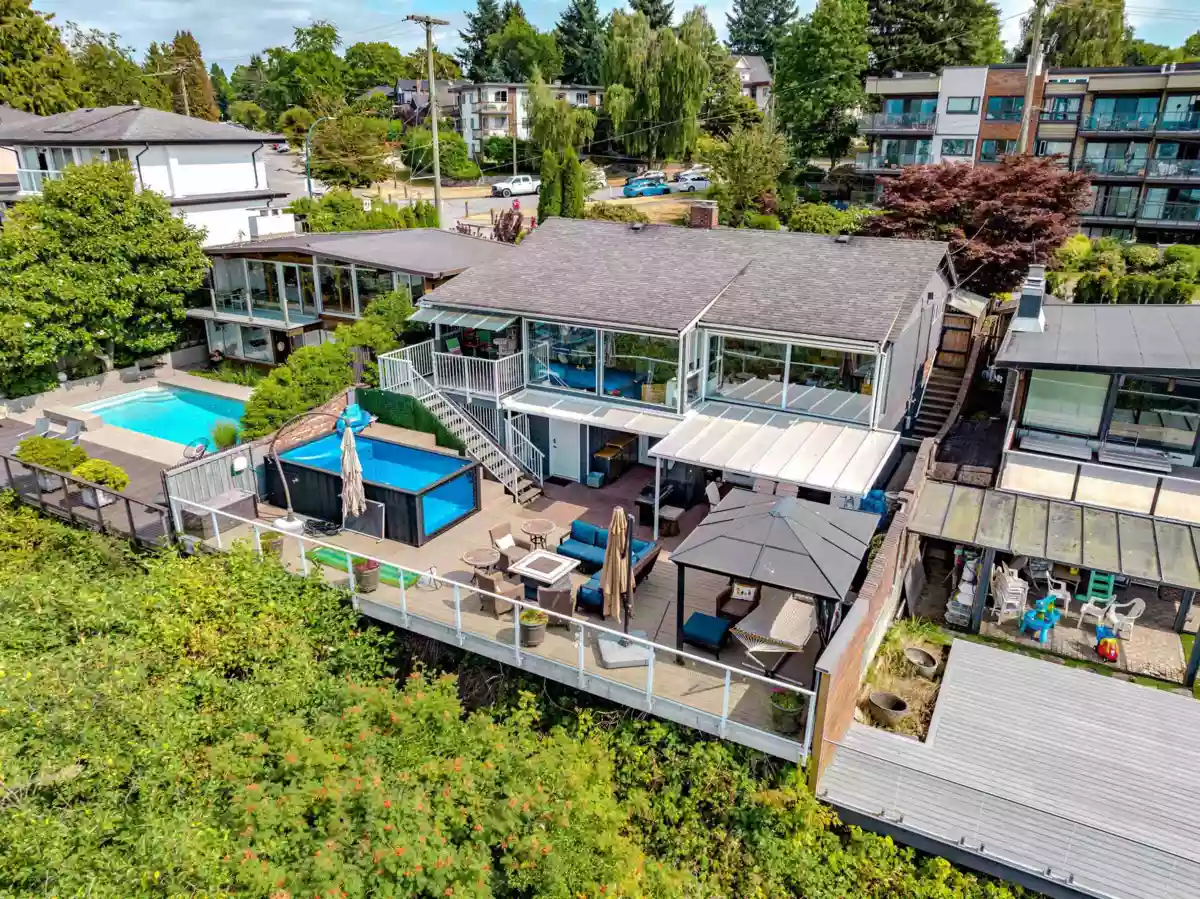 A once in a lifetime opportunity. Unparalleled views of Vancouver Harbour and the North Shore mountains - you will feel like you are living on the ocean. Just imagine summers spent entertaining on the huge open deck, complete with cast iron swimming pool... the possibilities are endless. Inside, a beautifully updated home that captures that view throughout the main living areas. Hardwood floors throughout - and a gorgeous kitchen featuring stainless steel appliances and quartz countertops - plus contemporary cabinetry. Lots of storage, three good sized bedrooms - your choice of primary up or down - ample storage and a wine cellar complete this home... don't miss your chance, - properties on this street are rarely available... the waterfront awaits!