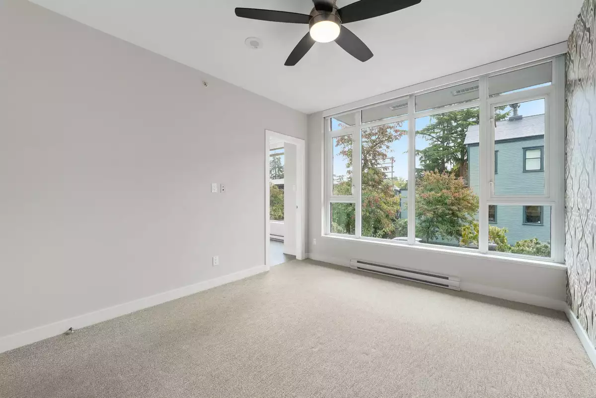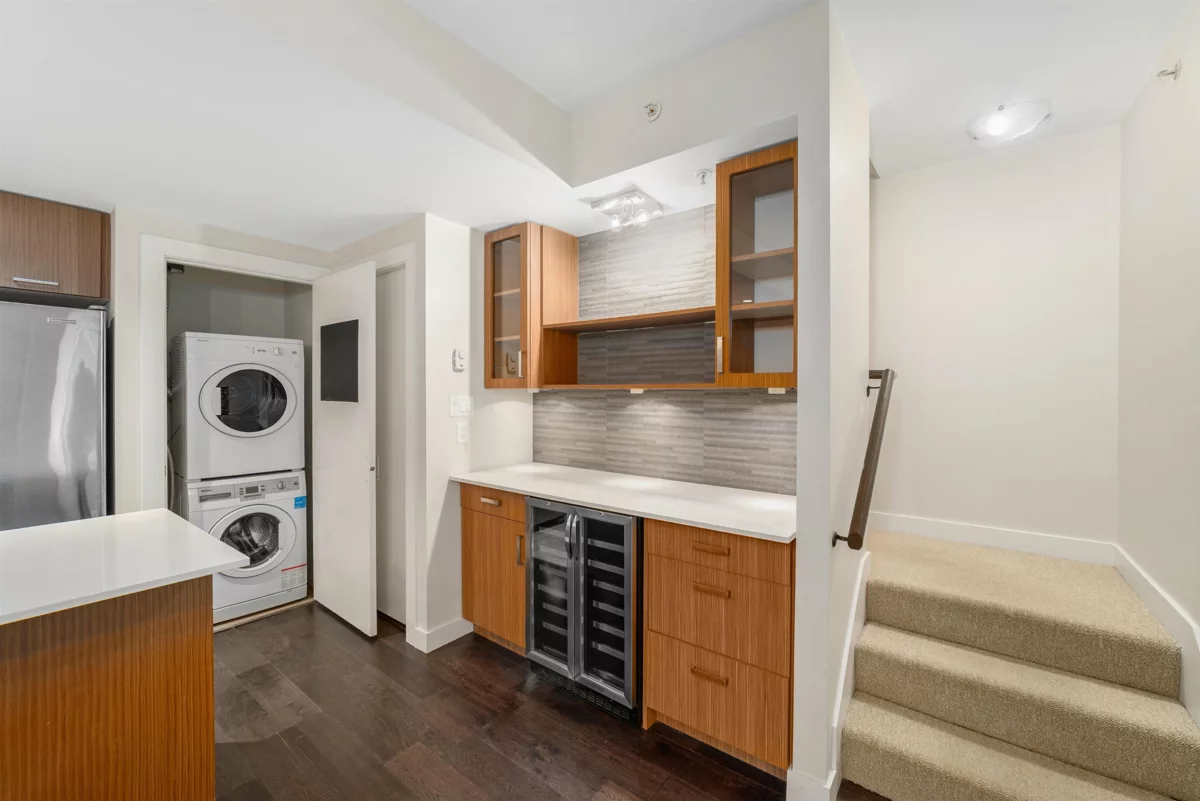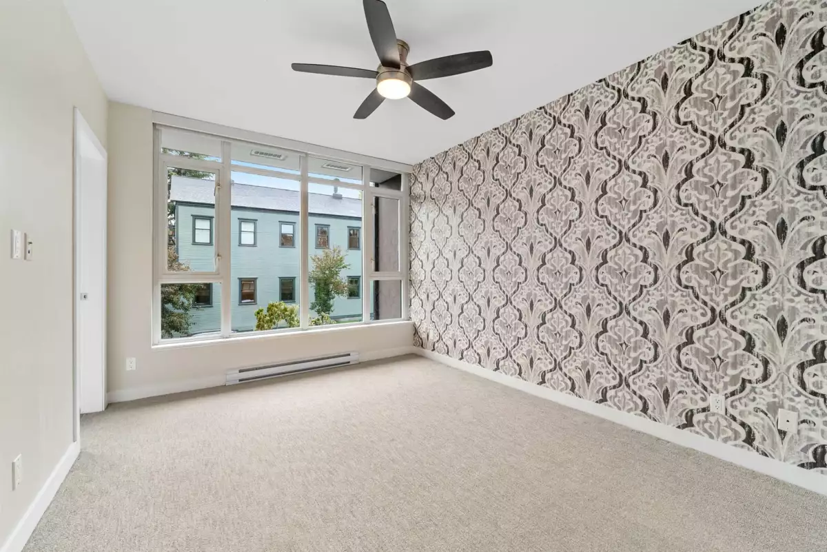 Welcome to your dream home in the heart of vibrant Mount Pleasant! This bright and spacious 2-level townhouse offers over 1,250 sq ft of stylish, functional living—perfect for young couples, professionals, or growing families. The open-concept kitchen equipped with custom built in coffee/wine bar, flows into a large living area with direct patio access, ideal for entertaining. A dedicated office on the main level adds convenience for remote work or extra storage. Upstairs, find two spacious bedrooms with custom closets, plus a versatile solarium—perfect for a nursery or second office. Soaring ceilings and wall-to-wall windows flood the space with natural light. Open House - Sat, Nov 29 (1-3pm)