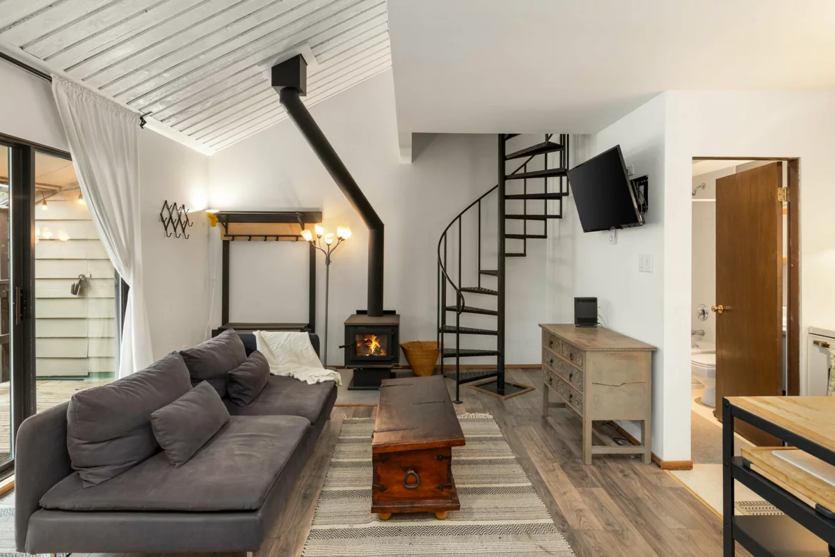 Welcome to Whistler Alpine Villa Ltd. This nicely updated 1-bedroom, 1.5-bathroom unit is the the best priced residential one bedroom on the market! Only a five minute walk to Creekside and all it has to offer; lakes, restaurants, coffee shops and the Creekside Gondola. Walk home from Après at Dustys! This unit features a wood burning fireplace, large balcony, primary with a custom king-sized bed and additional storage. Parking for two cars. Outside enjoy views of Nita Lake. The monthly maintenance fee includes the owner's share of the yearly property taxes, exterior property maintenance & insurance, snow removal and on site caretaker. No short term or long term rentals are allowed. This is a "Corporate Share Purchase".