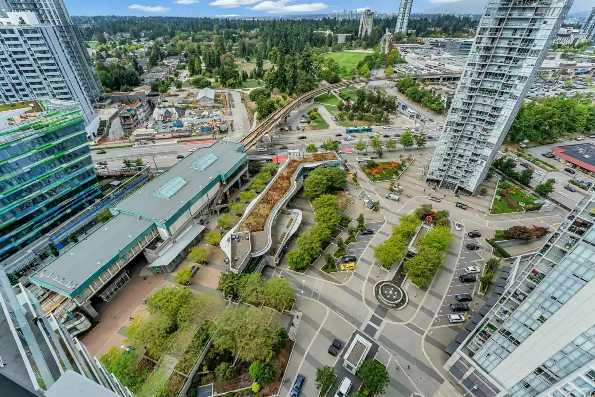 Park Boulevard by Concord Pacific in Surrey Central a stunning 2-bedroom, 2-bath corner unit offering over 800 sqft of modern luxury with soaring ceilings, quartz countertops, Bosch built-in appliances, gas cooktop, custom cabinetry, and central air conditioning. Perched high above the city, this home boasts breathtaking northwest views of sunsets, mountains, and cityscapes, all while being immaculately maintained. Resort-style amenities include a concierge, fitness centre, badminton court, indoor pool, hot tubs, sauna, steam room, sundeck, sports lounge, and business centre, with EV-ready parking included. Steps from King George SkyTrain Station and within walking distance to SFU, the future UBC campus, KPU, Surrey Memorial Hospital, Holland Park, and Central City Mall.