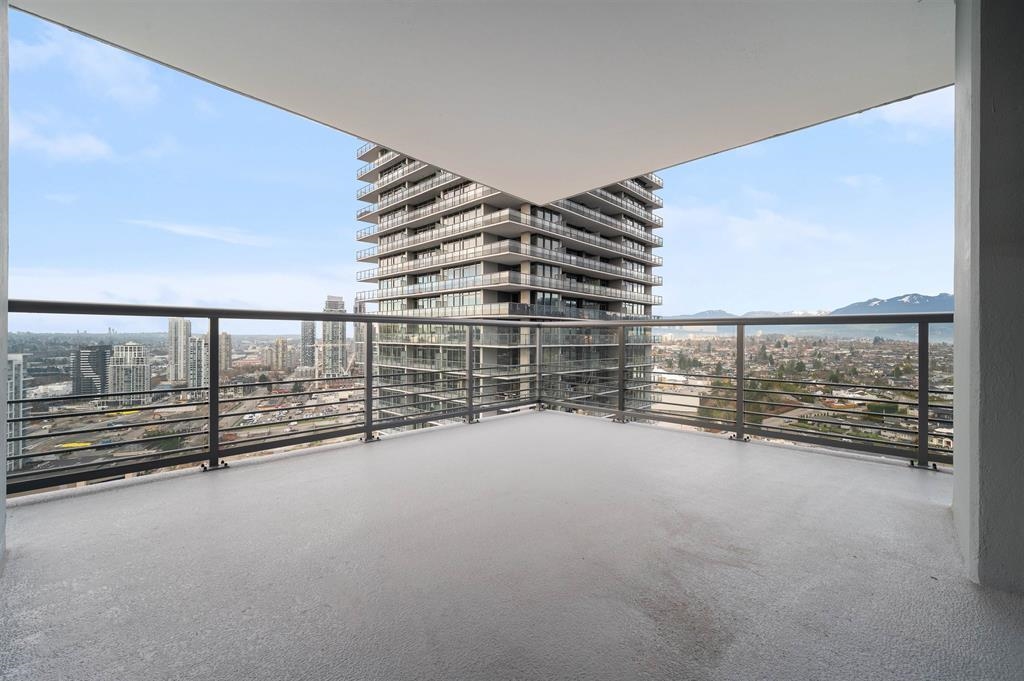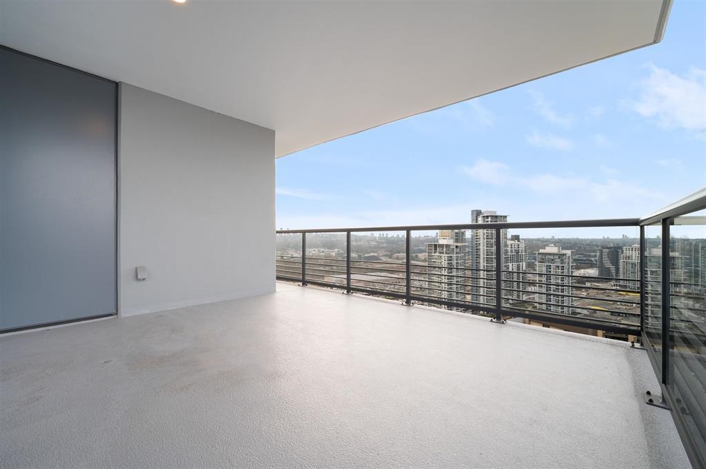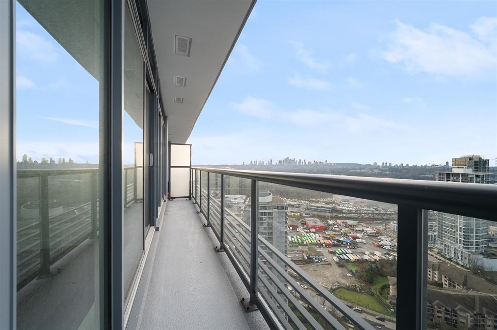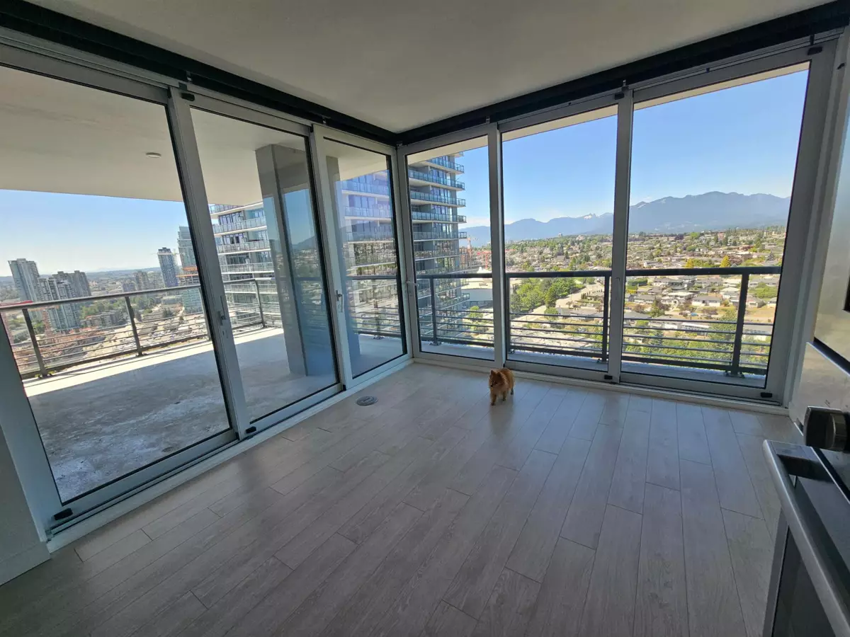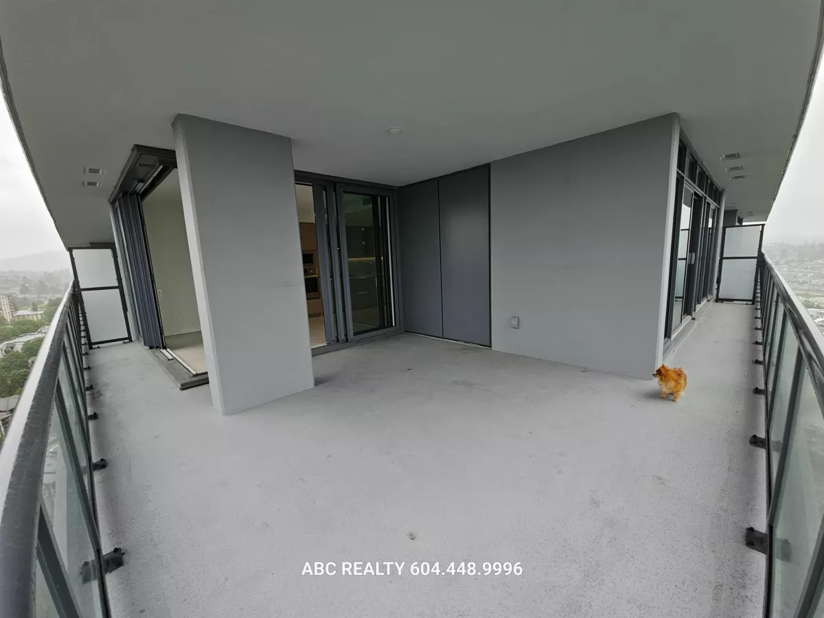 Hillside West by Concord Pacific - Like New! 2 bed 2 bath 732SF Corner Suite with HUGE wraparound Balcony (over 333sf!) and Panoramic Views! Indoor/outdoor living with large sliding glass doors that open the wall to the outside (with electric blinds). Features incl: Air Conditioning, 24/7 Concierge, high-end BOSCH appliances, Quartz countertops and beautiful flat panel cabinetry. Amenities incl: gym, theatre, study, piano room, dog wash, green spaces, pathways, future urban park and outdoor beach. Close to Brentwood for Entertainment and Shopping. Easy access to SKYTRAIN. E/V ready parking, locker, pets, rentals! Tenanted fixed term until Aug 2026.