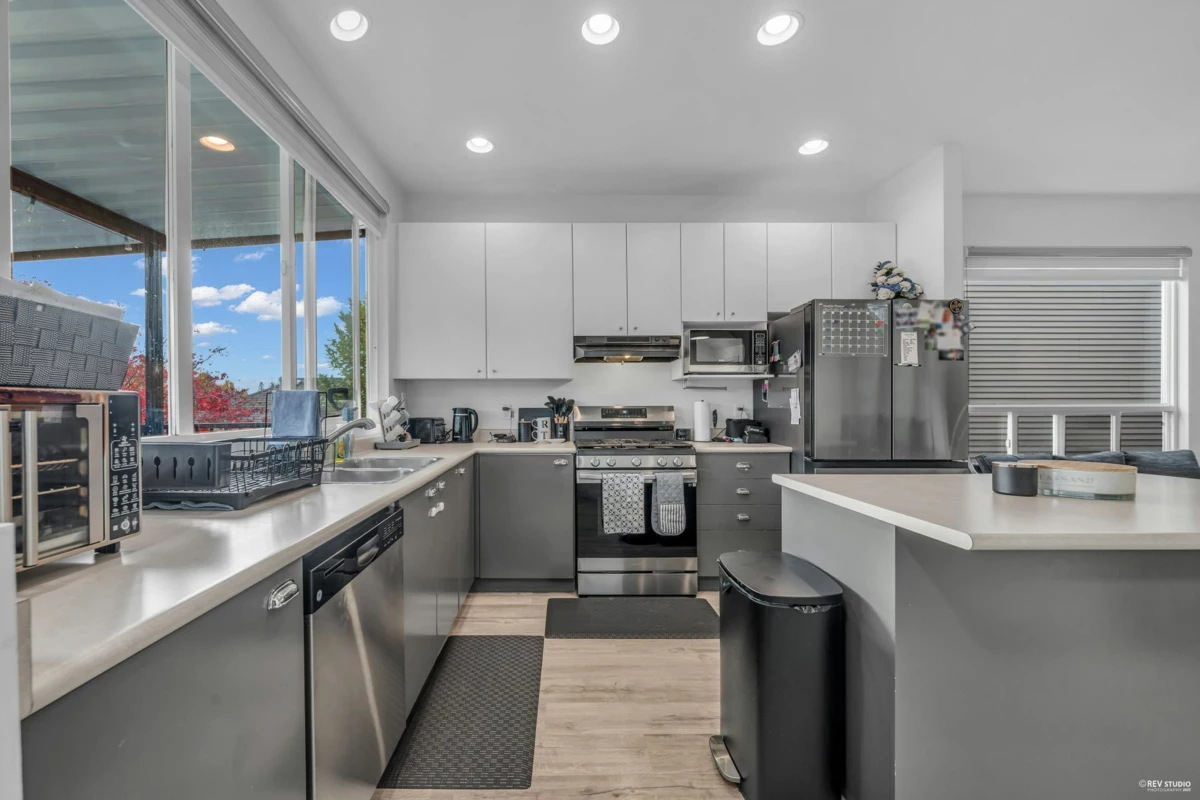 Turnkey & tastefully upgraded! This beautifully refreshed 5-bedroom, 4-bath residence showcases a bright open layout with modern vinyl plank flooring, recessed LED lighting, and fresh interior paint. The stylish kitchen features stainless steel appliances and flows effortlessly to a sunny, south-facing backyard—perfect for gatherings. Upstairs offers 3 generously sized bedrooms, including a primary suite with its own full ensuite. Recent improvements include a newer roof (approx. 7 years old), a brand-new deck, and a freshly painted exterior. The lower-level 2-bedroom suite with private entry - ideal for added income or mortgage help! Conveniently close to schools, cafés, and public transit. A must-see home!