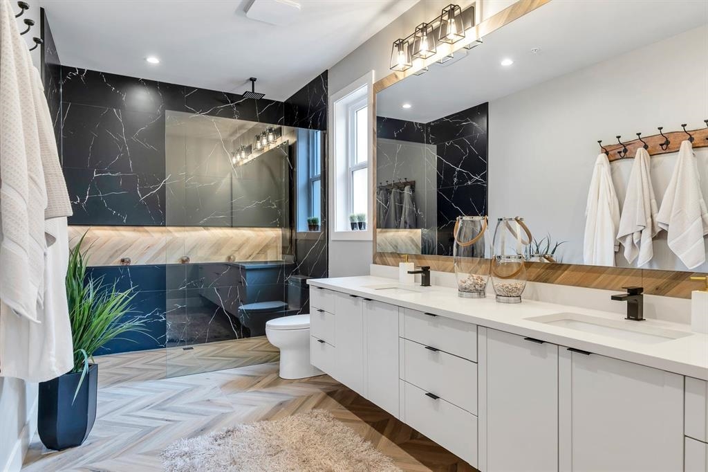 Emerald Ridge by Noura Homes offers an exclusive collection of three-car garage estate residences in the heart of Maple Ridge. Each home is thoughtfully positioned on a 6,000+ sq. ft. lot, backing onto a serene private greenbelt for unmatched privacy and connection to nature. Surrounded by a lush, forested setting, these contemporary designs provide the perfect backdrop to create the lifestyle you’ve always envisioned. The Blue Emerald plan is just waiting for your personal design finishing touches—boasting over 3,700 sq. ft. on 2 floors with 6 bedrooms, 5 bathrooms, including a 2-bedroom legal suite. Book your appointment today or visit us at our sales center located at 24469 Jenewein Dr Sat 2-4 and Sun 3-5. Call to book your own private tour. Pictures taken from Show Home