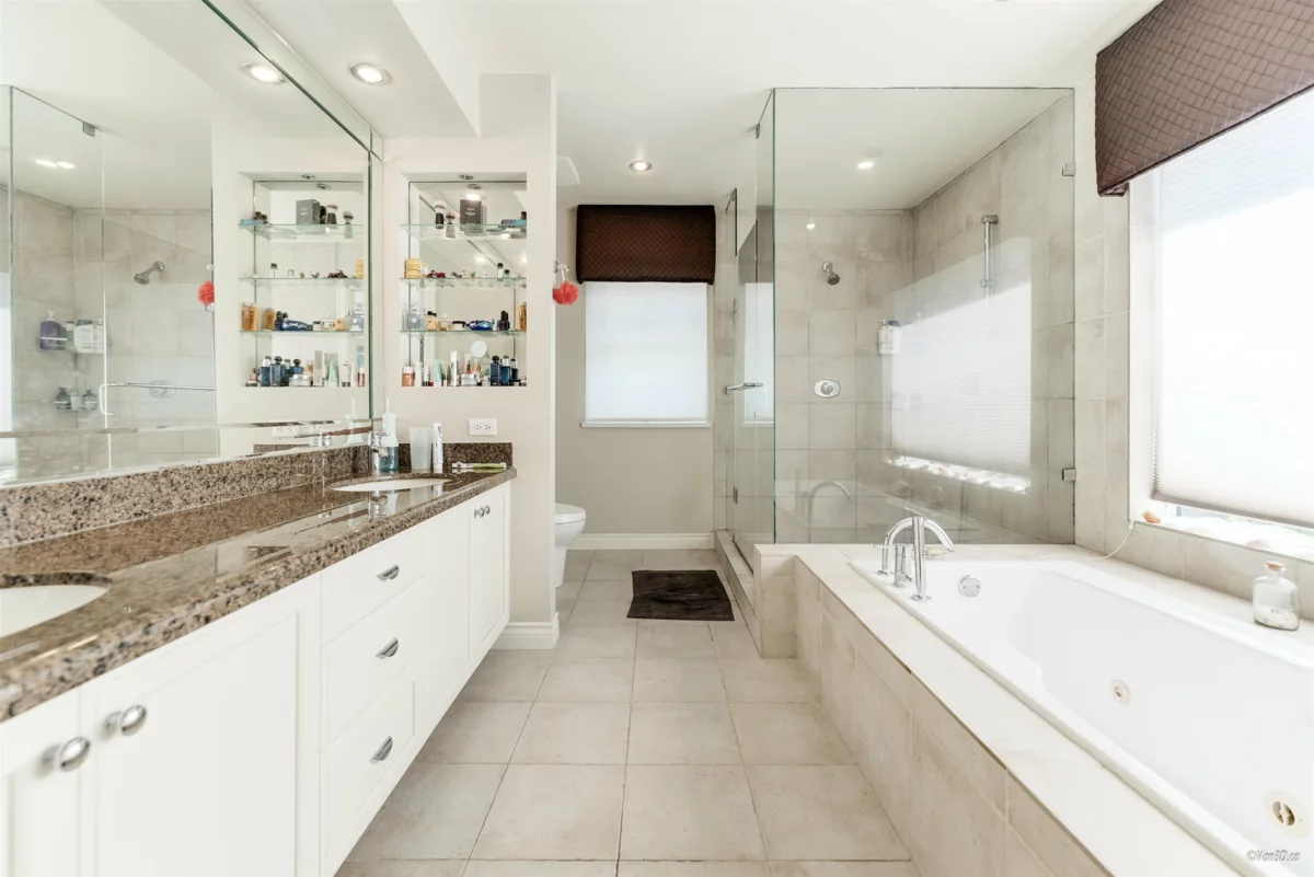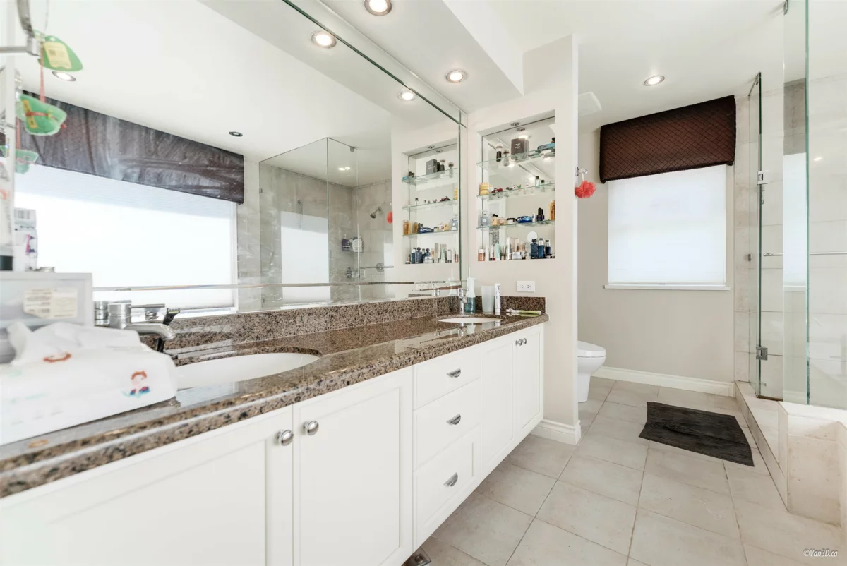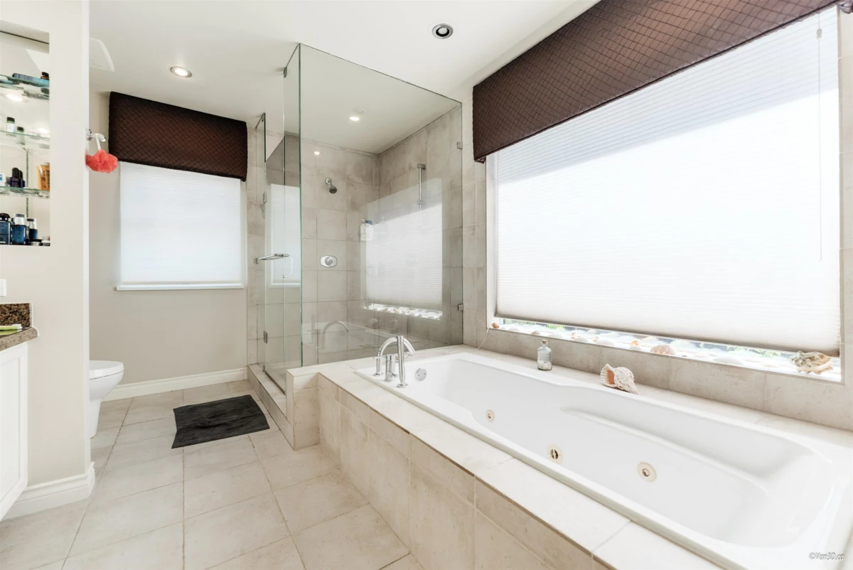 Prime location in Sherbrooke Estates—one of South Surrey’s most desirable neighborhoods! This spacious 4 bed, 3 bath home sits on a large lot and offers 2,595 sq ft of functional living. The main floor features a bright, open layout with high ceilings, formal dining, cozy family room with electric fireplace, plus a versatile living room/office and a full bath with guest bedroom. Updated kitchen with quartz counters, island, new fridge, and newer gas stove. Upstairs includes 3 generous bedrooms, including a luxurious primary suite with jetted tub, heated floors, and granite counters. Bosch on-demand hot water, new paint, roof (2015). Walk to Elgin Park Secondary & Semiahmoo Trail Elementary.