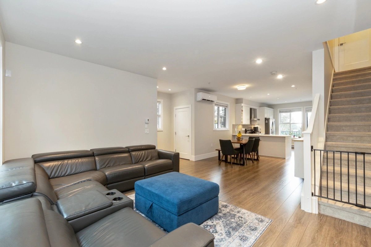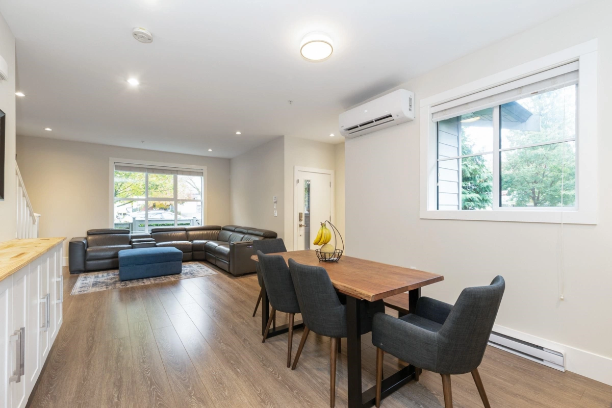 Welcome to Archstone Rockridge. Duplex style, END unit! This beautiful 3 bedroom, 3 bath townhome is in a choice family neighborhood of Silver Valley. MAIN- Bright, open plan with A/C. Lrg livingroom w/elec f/p, convenient dining room, lrg, bright kitchen w/nook area for multi uses. Breaky bar, quartz counters, ss appliances and more! End unit offers extra side windows, natural light. UP- lrg primary b/r w/walk thru closet to the ensuite. The 2nd and 3rd b/r's w/main bathroom & laundry complete upper level. Access front door off the street is nice for guests & groceries. Private location. Steps from hiking trails, Alouette River, Wild Play adventure park, Maple Ridge Park and minutes from Golden Ears Provincial Park. School catchments are Yennadon Elementary and Garibaldi Secondary.
