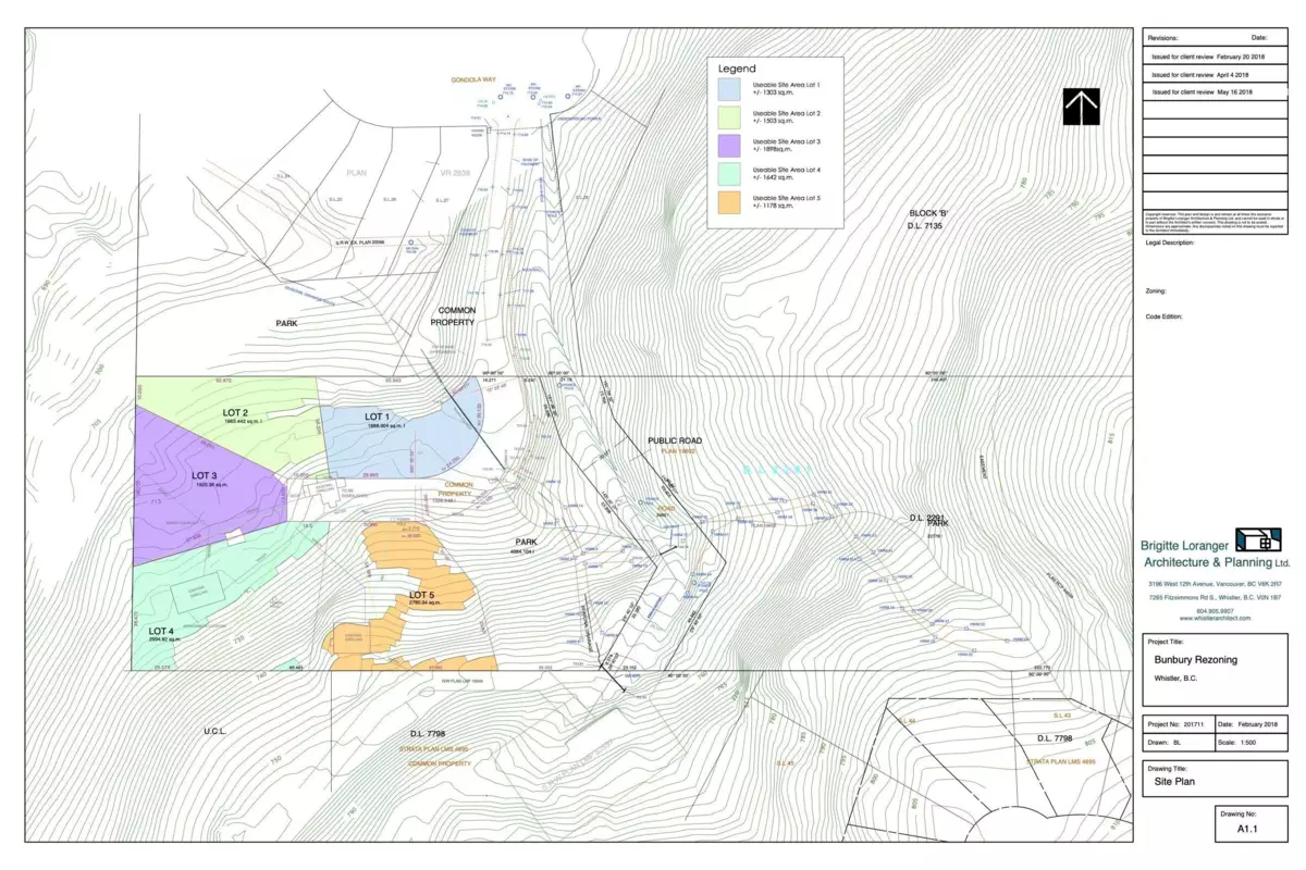 POTENTIAL. You can build on ONE LOT and leave the other 4 lots vacant for your future plans once the land is registered as a subdivision with the 5 lots laid out as per your plans. Now zoned for a subdivision of 1-5 residential lots with a tree preservation zone. The size of the detached houses zoned for development does not include a significant basement/below-grade allocation. Call the listing realtors to discuss in detail. No time specifications on buildings per RS1 zoning. Currently 3 cabins on the land. Lot 5 cabin is at the highest point and has MAGNIFICENT panoramic mountain views to the north and south. The south view and the elevation means extended sunshine on location. Ski home from Whistler Mountain via Kadenwood and Bayshores Trail to lot 5 or to the entrance of development.